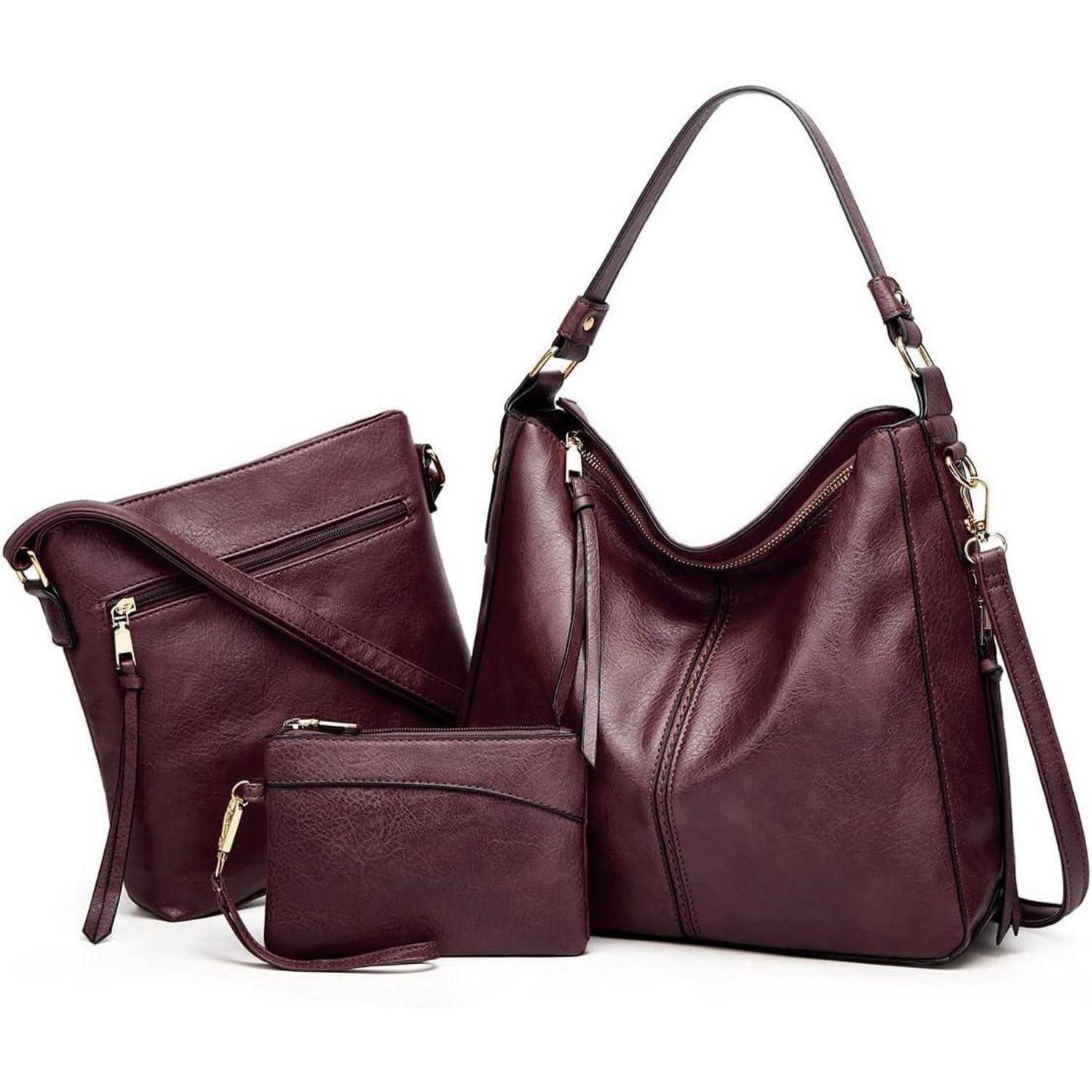 Das Set enthält eine Handtasche, eine Schultertasche und eine Geldbörse, die jeweils perfekt auf die Bedürfnisse einer modernen Frau zugeschnitten sind. Die vielseitigen Taschen eignen sich sowohl für den Arbeitsalltag als auch für besondere Anlässe.