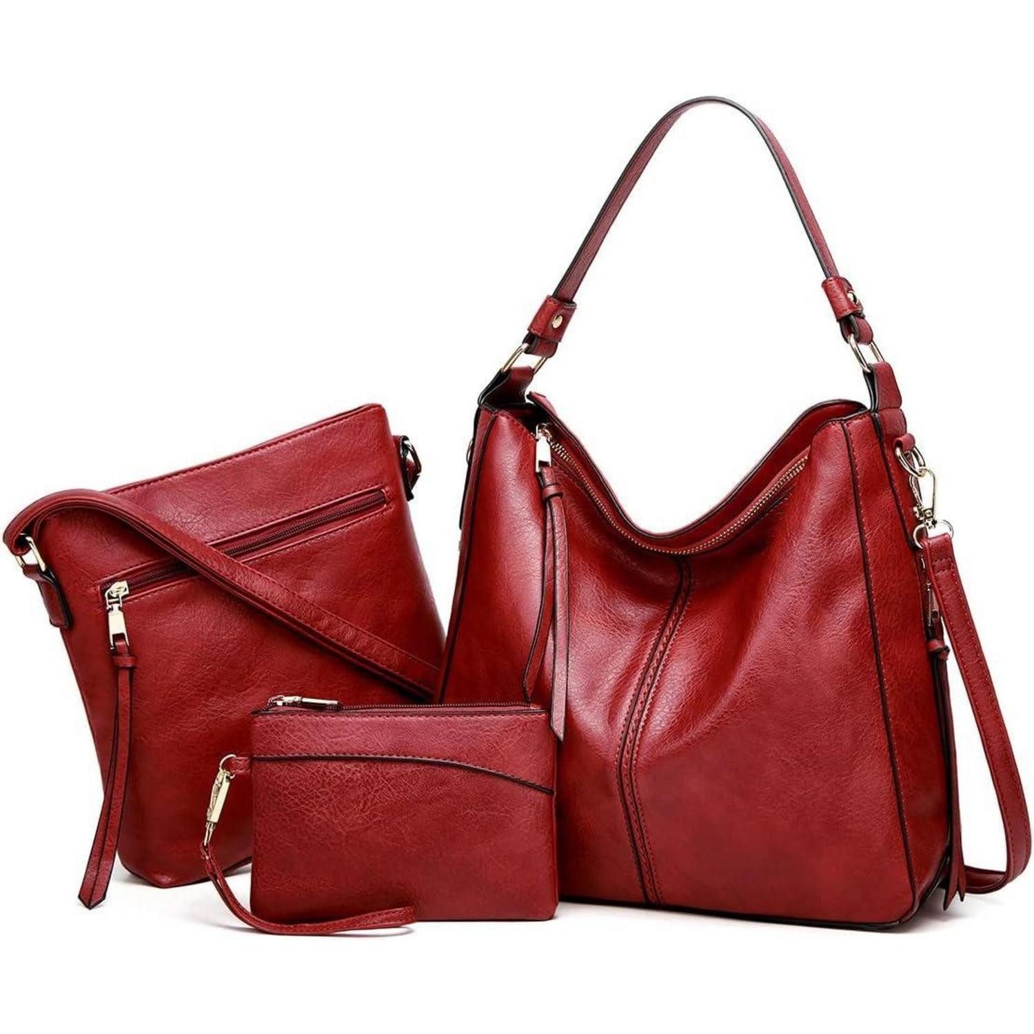 ♕ Größe: Diese schöne und stilvolle Tasche wird im 3er-Set geliefert. 1*Handtasche, 1*Schultertasche, 1*Geldbörse. Die Tragetasche misst 34cm*13cm*30cm (13.39 "L*5.12 "W*11.81"(H)), die Umhängetasche misst 23cm*25cm (9.06 "L*9.84 "W) und die Geldbörse misst 17cm*12cm (6.69 "L*4.72 "W). Gesamtgewicht: ca. 1,1 kg.