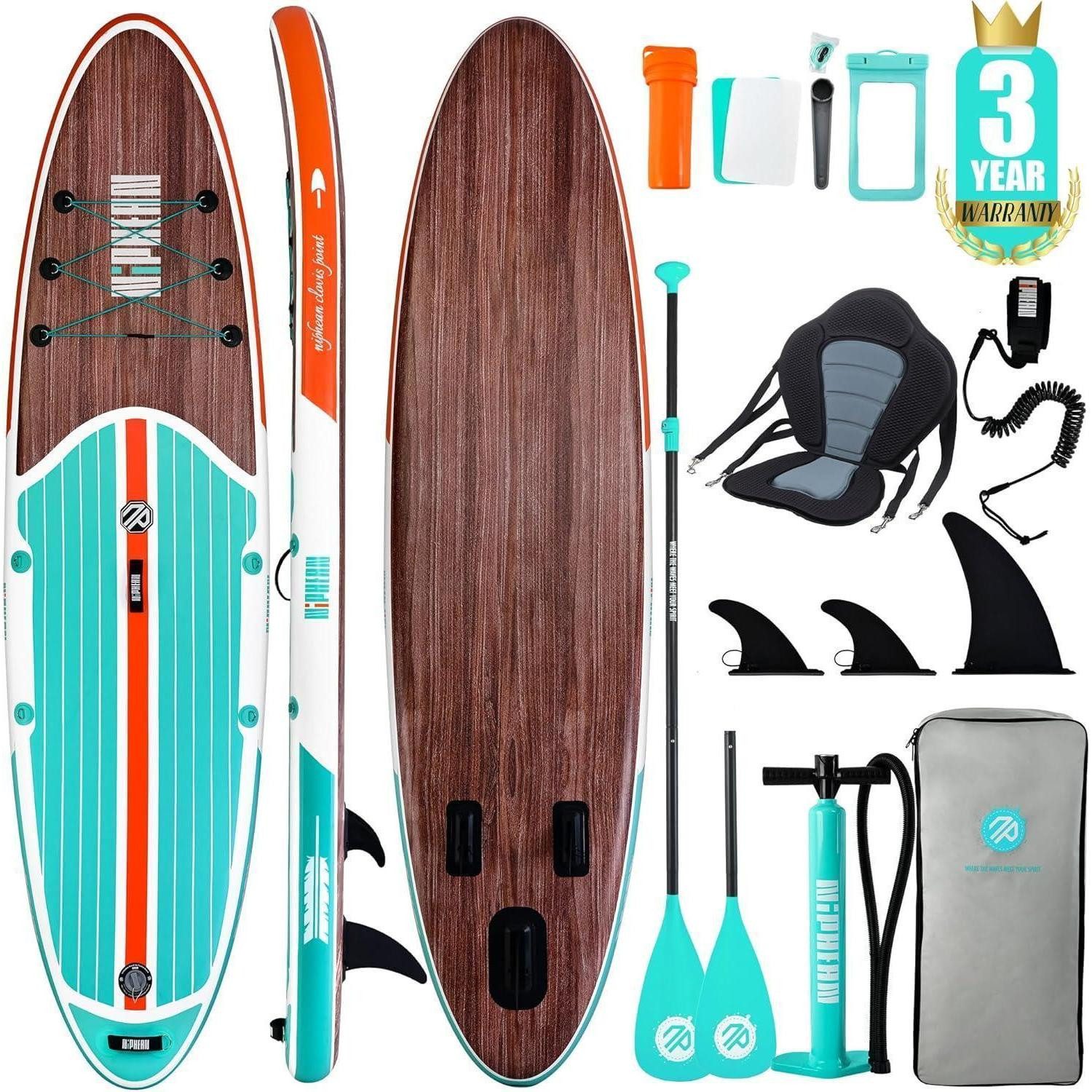 Dieses Board ist mehr als nur ein Sportgerät – es ist dein Allrounder für jedes Wasserabenteuer. Die hochwertige Verarbeitung von Niphean garantiert Langlebigkeit und Stabilität, während das klassische Wood Grain-Design für beeindruckende Auftritte sorgt. Mit einer Größe von 320x83x15 cm, einem Gewicht von 8,6 kg und einer Tragfähigkeit von 200 kg bietet es Erwachsenen aller Könnensstufen ein sicheres und spaßiges Erlebnis. Ob Einsteiger oder Fortgeschrittene – dieses Stand up Paddle