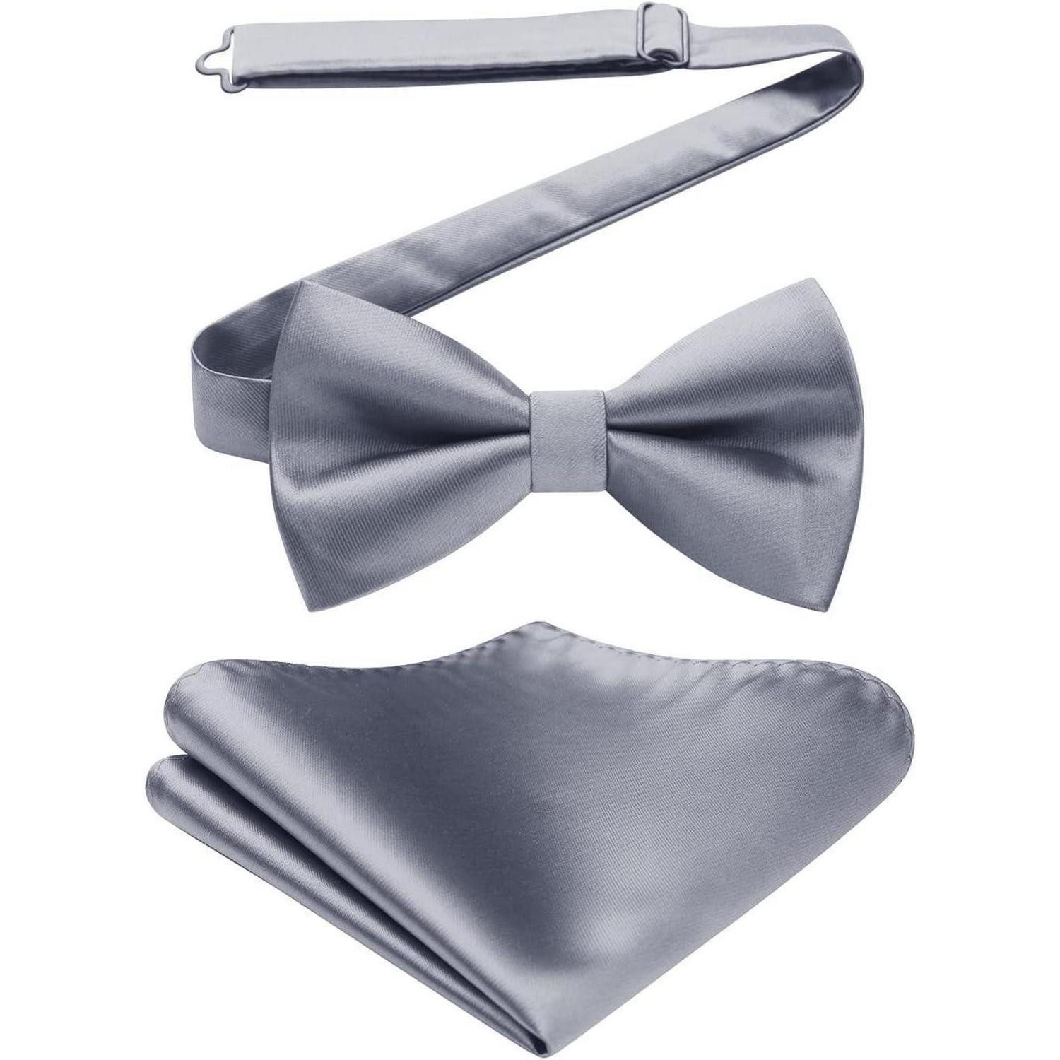 Für alle, die ihn lieben: HISDERN Fliege Vorgebundene Fliege Herren mit Einstecktuch Set Einfarbig Fliege Anzug für Smoking, Hochzeit B2-silber – eine stilvolle Entscheidung für jeden Anlass. Ob