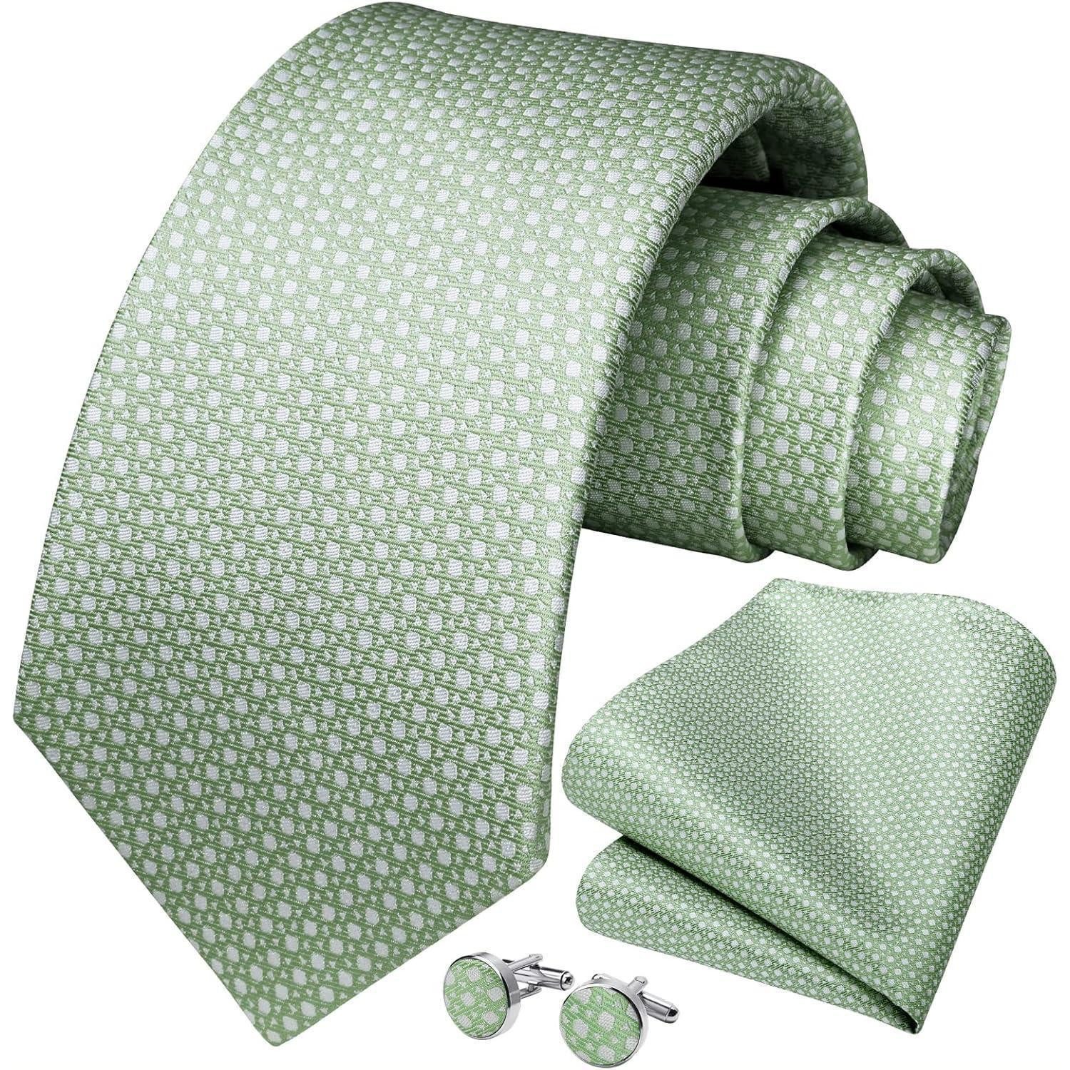 Stell dir vor: Du stehst vor dem Spiegel, der Anlass ruft – und du bist bereit. Dieses Set aus Krawatte, Einstecktuch und Manschettenknöpfen in Salbei Grün ist mehr als ein Outfit-Update; es ist dein Statement für zeitlosen Charme. Die Krawatte überzeugt mit einer Breite von 3,4 Zoll (8,5 cm) und einer Länge von 59 Zoll (150 cm). Das Einstecktuch misst 12 Zoll x 12 Zoll (31 cm x 31 cm) und ergänzt das Ensemble perfekt. Die harmonisch aufeinander abgestimmte Optik und das durchdachte Design machen dich sofort bereit für Hochzeiten, Geschäftstreffen oder formelle Abendessen. Warme Tipps: Es ist normal, dass die Krawatte während des Versands leicht knittert; bügle sie vor dem Tragen bei niedriger Temperatur. Beachte außerdem, dass Farben je nach Monitor- oder Lichteinstellung leicht abweichen können.