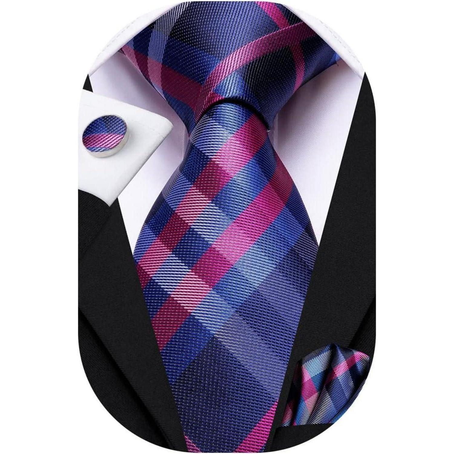 Stell dir vor: Du betrittst den Raum, das Licht fällt auf den seidigen Glanz der Jacquard-Seide und deine Ausstrahlung ist sofort präsent. Dieses einzigartige blau-lila Plaid-Set – eine Krawatte, ein Einstecktuch und zwei Manschettenknöpfe – verbindet zeitlose Eleganz mit moderner Tiefe. Mit 1200 sorgfältigen Stichen sorgt es für eine formstabile Struktur und einen Knoten, der den ganzen Tag perfekt sitzt. Die Komposition aus Blau- und Lilatönen verleiht jedem Look eine subtile, spektakuläre Note – ideal für Hochzeiten, feierliche Anlässe oder geschäftliche Highlights. Und falls du es als Geschenk planst: Die Verpackung macht direkt Eindruck – bereit zum Verschenken.