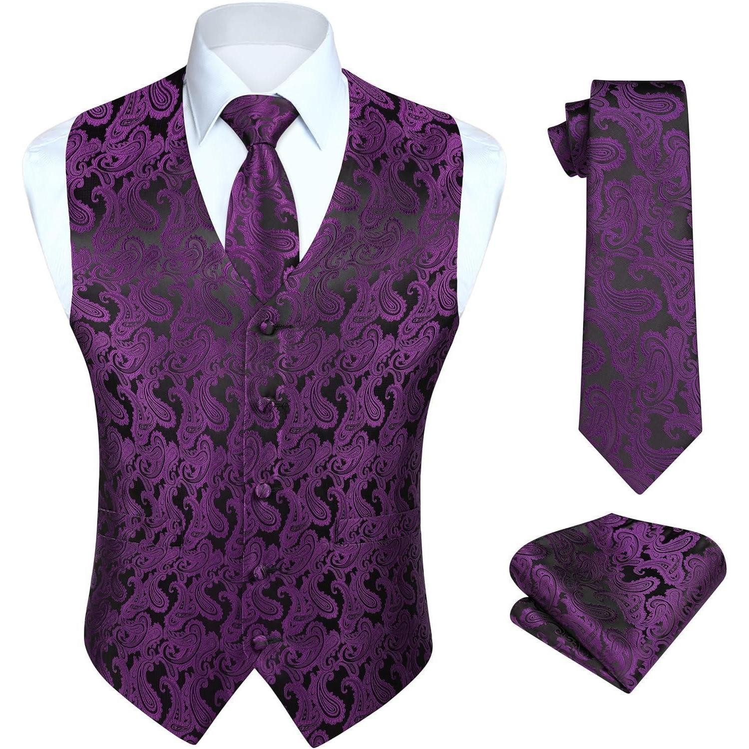 Stell dir vor: Der große Tag naht und du willst an deiner Seite Stil, Anmut und selbstbewusste Eleganz tragen. Dieses XL Lila-2 Set von HISDERN vereint eine hochwertige Jacquard-Weste, eine passende Krawatte und das stilvolle Einstecktuch zu einem harmonischen Gesamtauftritt – perfekt für eine Floral-Hochzeit, Party, Abschlussball oder Bühne. Du bekommst das komplette Anzug-Set, das sofort Eindruck macht und dich unverwechselbar glänzen lässt.