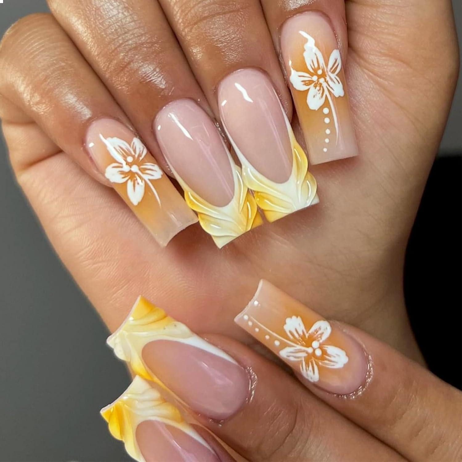 Erweiterte Artikelbeschreibung: Die Press on Nägel Lange Quadratische Falsche Nägel bieten Ihnen die Möglichkeit, Ihren Look jederzeit und überall zu verändern. Mit einem 3D strukturierten Wellenmuster Design in Gelb und French Tip sind diese Acrylnägel perfekt, um Ihre Maniküre auf das nächste Level zu bringen. Die 24 Stück Blumen Maniküre ist ideal für Frauen, die hochwertige und stilvolle Nägel wünschen. Die hochwertigen ABS-Materialien sorgen für Langlebigkeit und Glanz. Die Nägel sind leicht anzubringen und können einfach zugeschnitten und gefeilt werden, um die gewünschte Länge und Form zu erreichen.