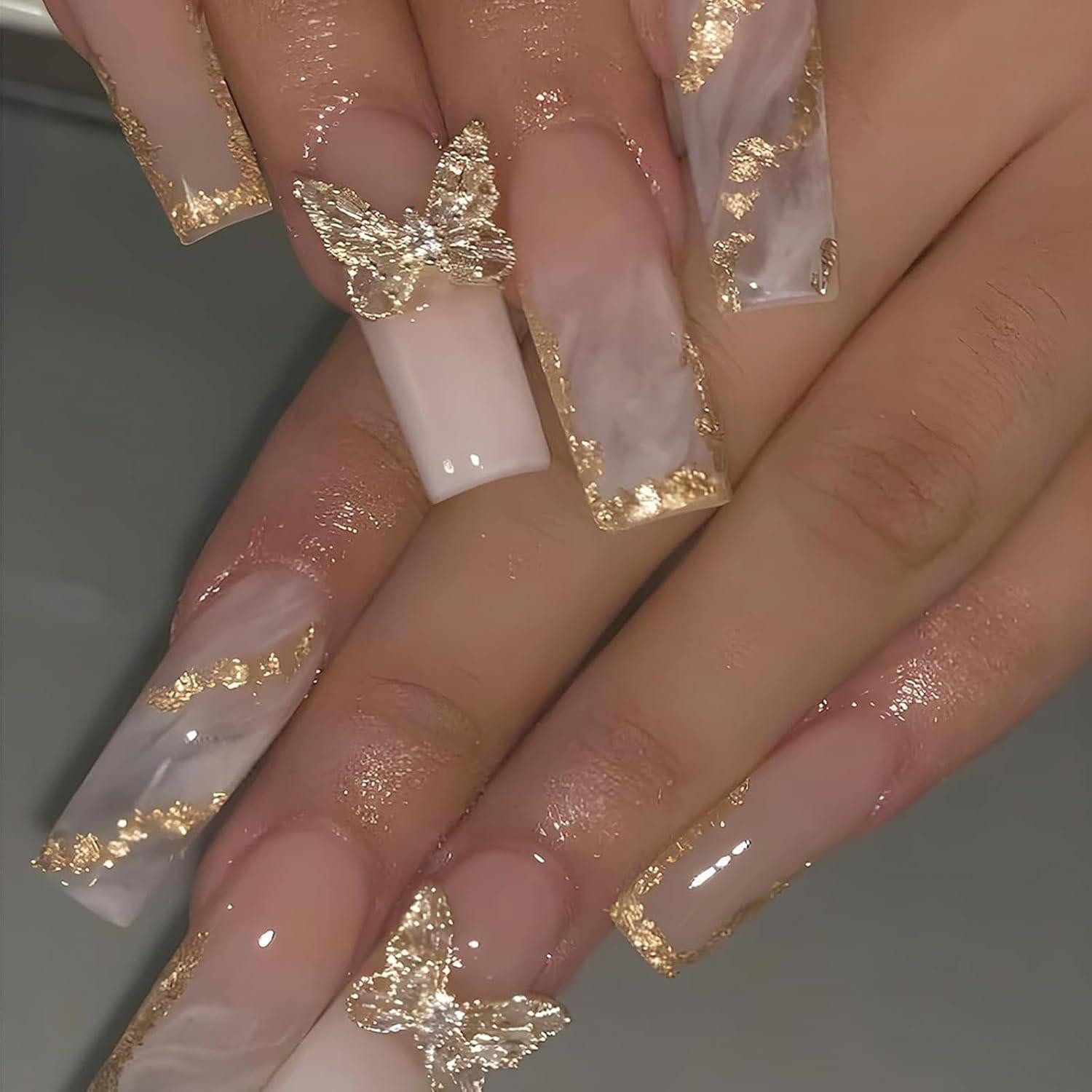 Dieses Set liefert Ihnen 24 Stück künstliche Nägel mit Goldfolie, Glitzer und eleganter Ombre-Optik für sofort stylische Nagelkunst zu Hause