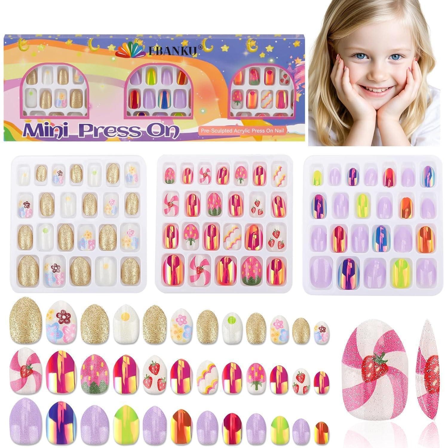 Dieses Set bietet drei Stile und 72 Nägel zum Aufkleben, ideal für DIY Nagelkunst bei Mädchen 8–12 Jahre