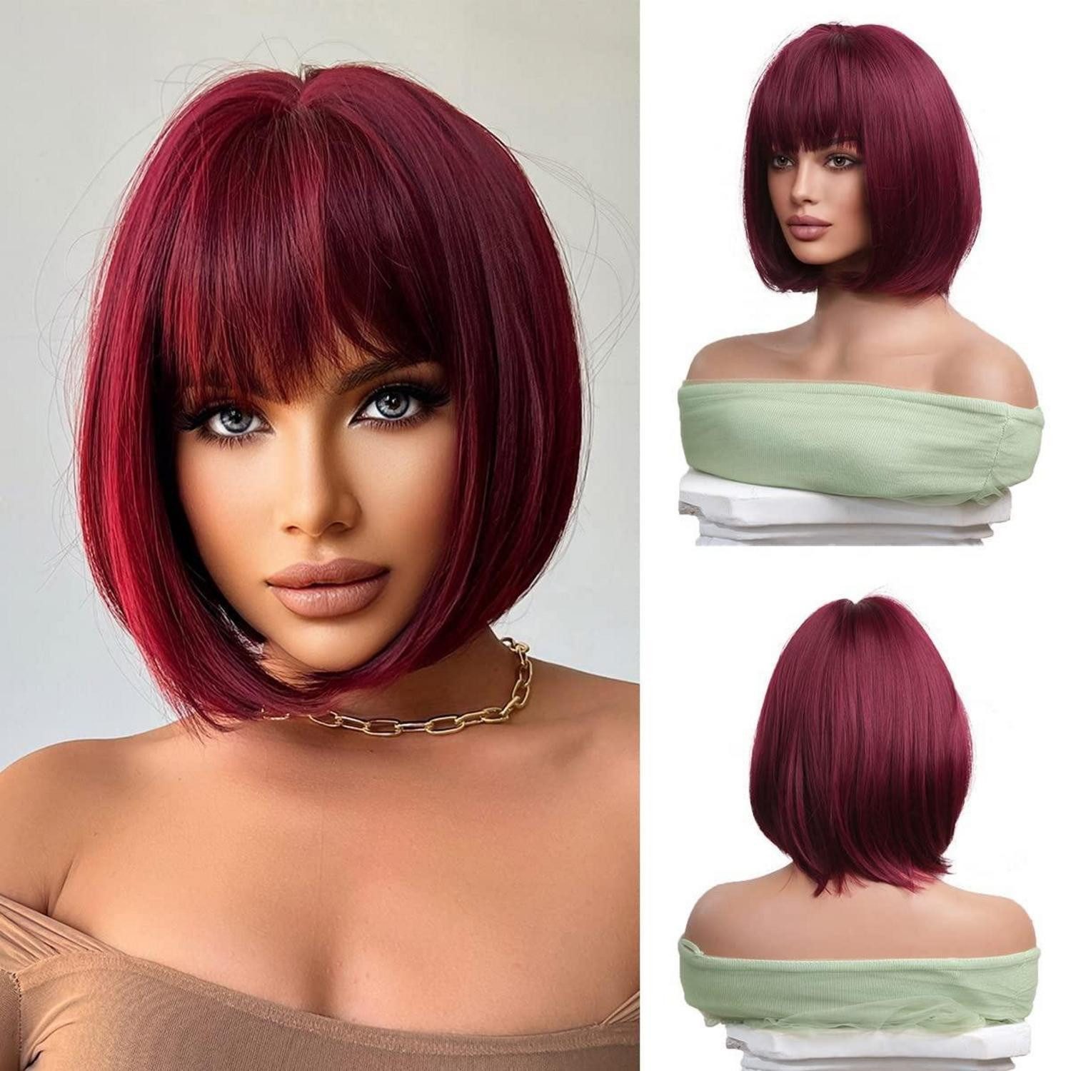 Die OUFEI 10 Zoll Weinrot Bob Perücke ist die perfekte Wahl, um Ihrem Look das gewisse Etwas zu verleihen. Die Kurzhaarschnitt-Perücke in leuchtendem Weinrot besticht durch ihre gerade Textur und schmeichelt Frauen jeden Haartyps.
