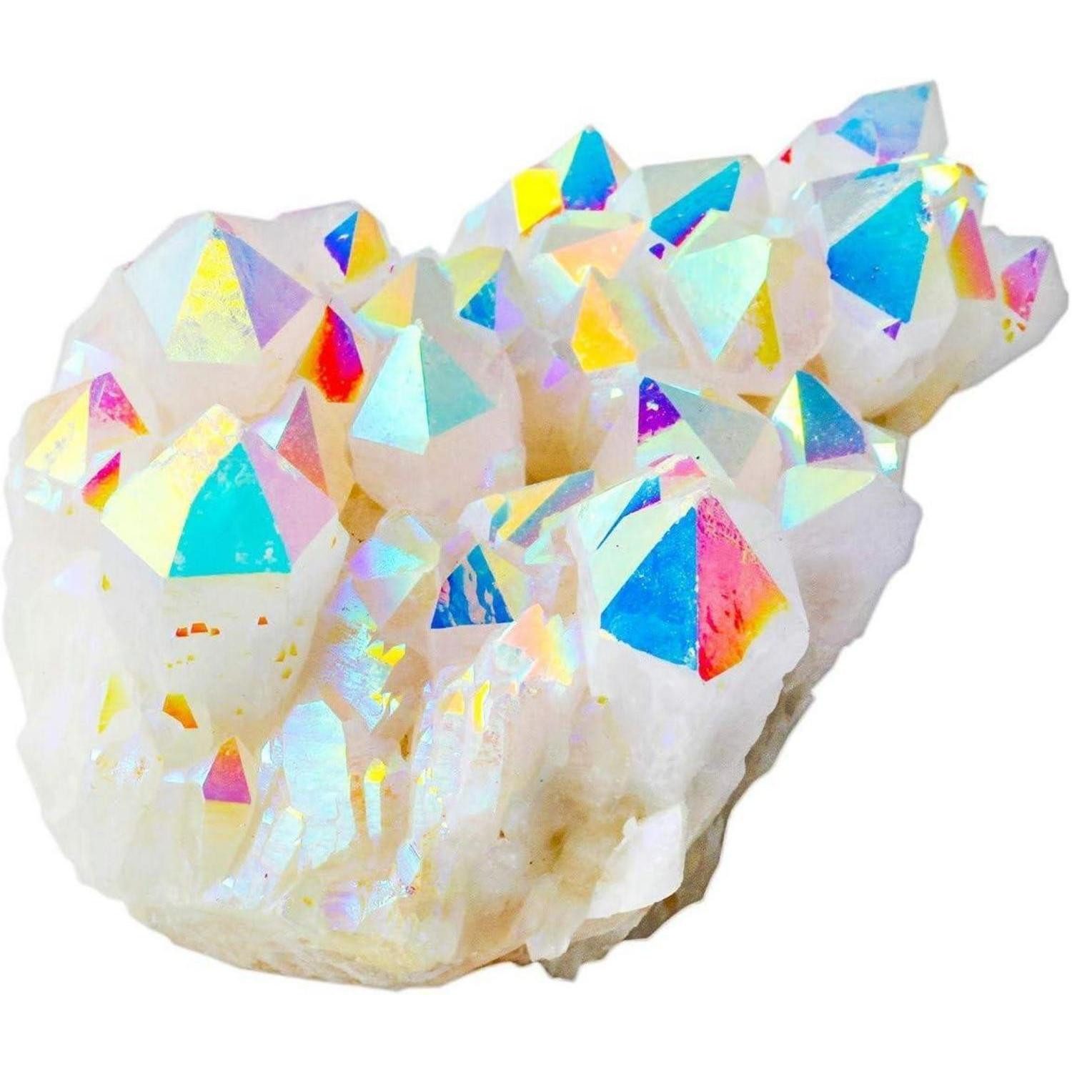 Stell dir vor: Die Natur hat hier eine unregelmäßige, eindrucksvolle Form geschaffen – ein Bergkristall-Cluster mit Titanbeschichtung in strahlendem Weiß. Dieses Exemplar ist echtes Naturmaterial, daher ist jedes Stück ein Unikat. Die Größen reichen von ca. 65-90 mm Länge, 35-60 mm Breite bis 35-50 mm Dicke; Gewicht ca. 100-220 g. Lieferumfang: 1x Titanium Coated Quartz Geode Crystal, 1x KYEYGWO Geschenkbeutel. Perfekt als Reiki-Stein, Dekoration zu Hause oder im Büro, Meditation, Glücksstein und Sammlerstück.