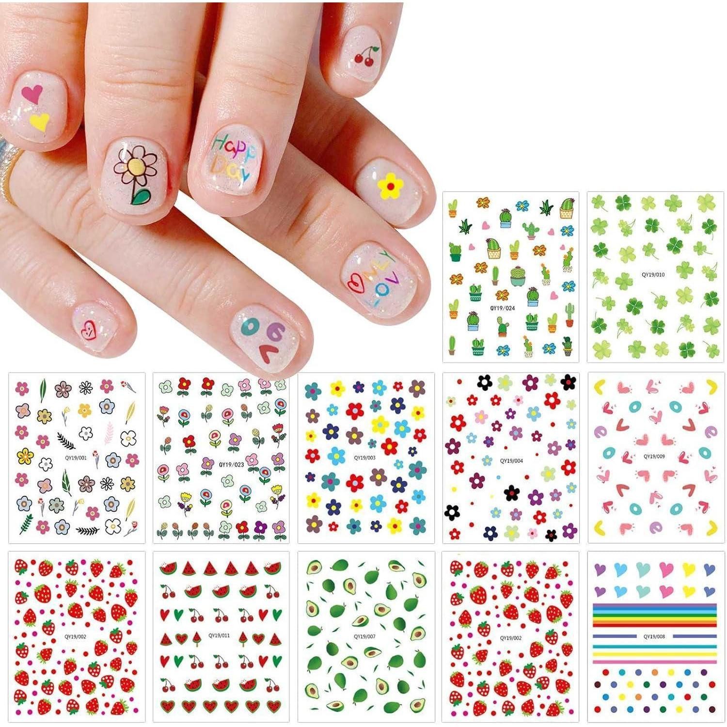 Entdecken Sie die süßen Nagelsticker für Kinder – 14 Blatt Nail Art Sticker Selbstklebend Nagelaufkleber Regenbogen Blumen Frucht Dekoration Nageldesign Zubehör, ideal für Fingernägel, Fußnägel und DIY Projekte