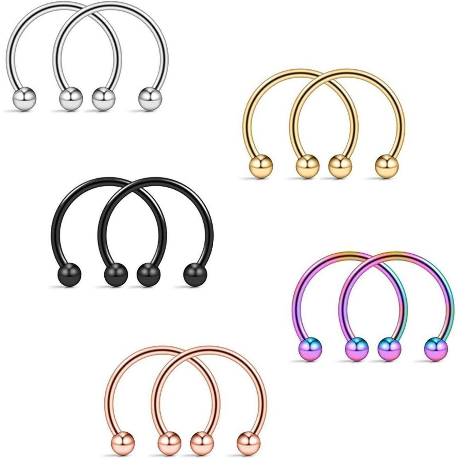 Der Chirurgenstahl ist bekannt für seine Hautverträglichkeit und seine Robustheit, was eine lang anhaltende Freude an Ihrem Piercing garantiert. Das glänzende Finish verleiht jedem Stück einen eleganten Touch, während die Hufeisenform einen modernen Look schafft. Egal, ob Sie Ihr Nasen-, Augenbrauen-, Lippen- oder Ohrpiercing schmücken möchten, mit diesem Set sind Ihnen keine Grenzen gesetzt.