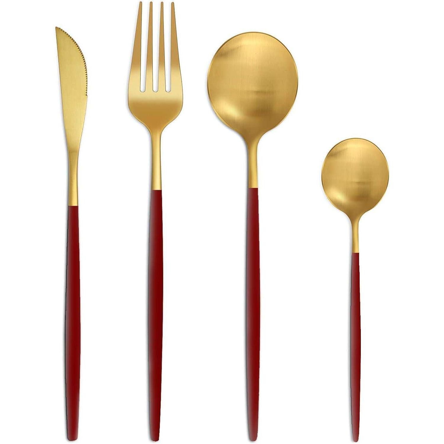 Stell dir vor, wie jeder Biss von der exquisiten matt-gold Titanbeschichtung betont wird – eine Szene, die besonderen Momenten einen verbindenden Glanz verleiht. Der Wellenschliff der Messer garantiert langanhaltende Schärfe, während die robuste Konstruktion dafür sorgt, dass dein Besteck auch nach vielen Mahlzeiten wie neu aussieht. Dieses Bestdin Besteck Set ist die ideale Wahl für 6 Personen – elegant, langlebig und alltagstauglich, damit jeder Anlass zu einer besonderen Erfahrung wird. Entdecke das 24-teiliges Set in rotem Gold und genieße Stil, Funktionalität und Hygiene in einem einzigen, hochwertigen Ensemble.