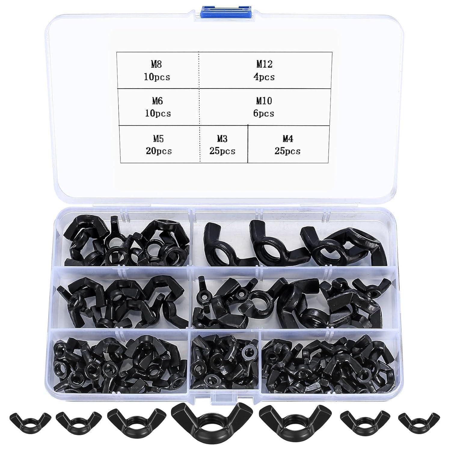 Stell dir vor: Die perfekte Verbindung, die sofort griffbereit ist – ohne Werkzeuge, schnell gelöst oder festgezogen. Dieses Set in der 130 schwarz Variante liefert 100 Flügelmuttern aus hochwertigem Kohlenstoffstahl, sortiert von M3 bis M12, und kommt in einer stabilen, geteilten Kunststoffbox. So hast du immer den passenden Typ direkt zur Hand – zuverlässig, langlebig und übersichtlich sortiert.