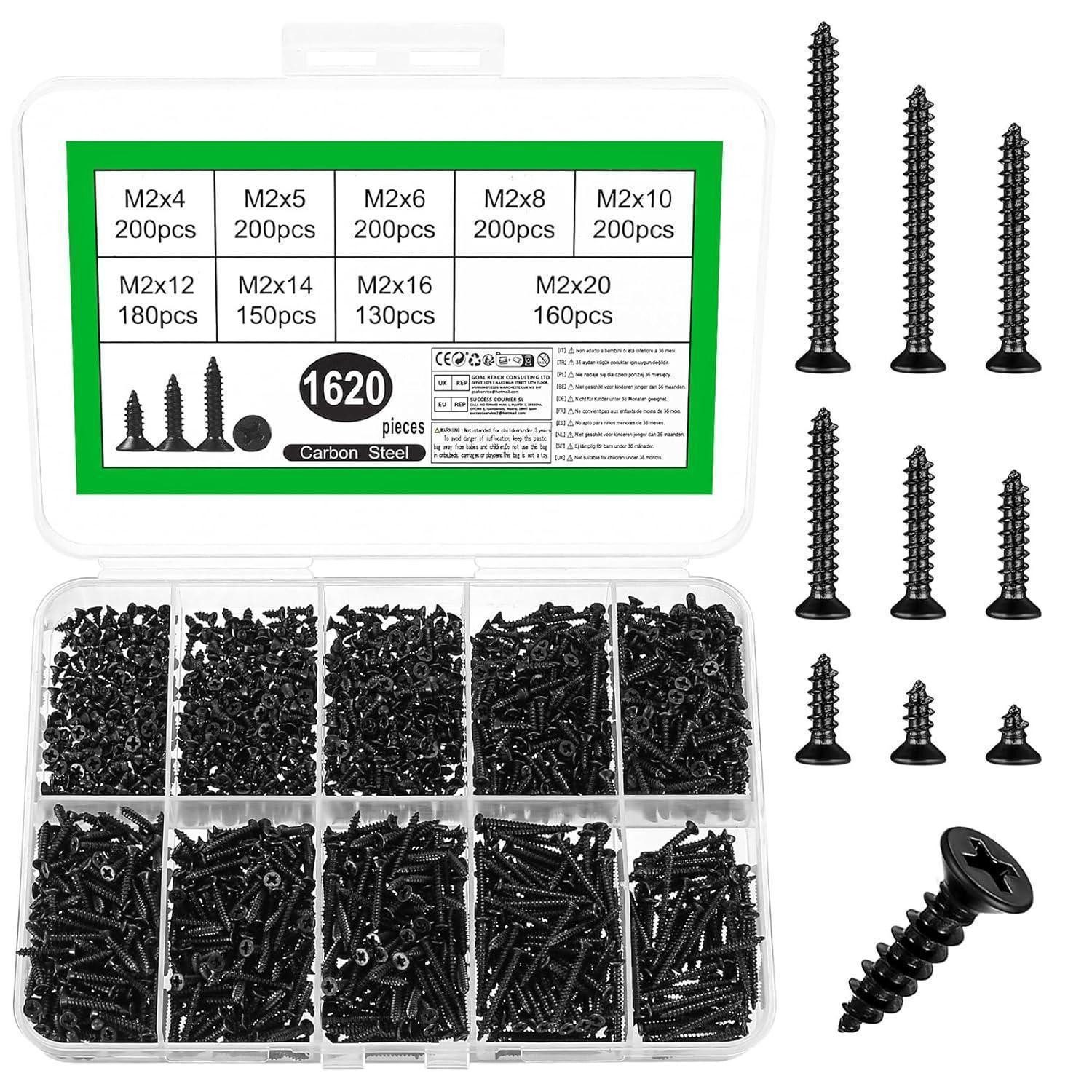Stell dir vor: Du planst ein Holzprojekt, eine Reparatur an Möbeln oder eine Installation von Haushaltsgeräten – und du hast genau die richtigen Schrauben griffbereit. Dieses Set kommt in klassischem Schwarz und umfasst insgesamt 1620 Stück in einer breiten Größenvielfalt: 200 Stück M2 x 4 mm, 200 Stück M2 x 5 mm, 200 Stück M2 x 6 mm, 200 Stück M2 x 8 mm, 200 Stück M2 x 10 mm, 180 Stück M2 x 12 mm, 150 Stück M2 x 14 mm, 130 Stück M2 x 16 mm und 160 Stück M2 x 20 mm. Dank dieser reichen Auswahl bist du flexibel für mehrere Projekte gleichzeitig. Gefertigt aus hochwertigem Kohlenstoffstahl, bieten diese Schrauben eine robuste, langlebige Lösung mit guter Korrosionsbeständigkeit, die nicht leicht rosten oder sich verformen.