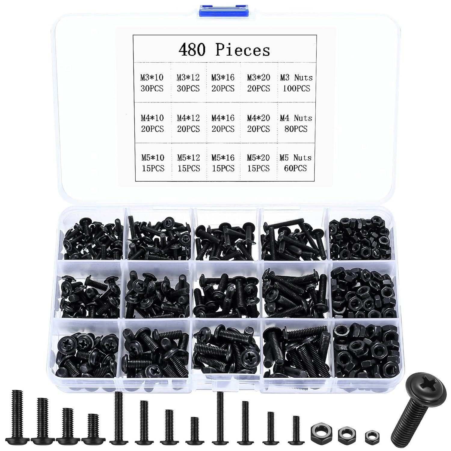 Dieses Set ist der ideale Begleiter für Heimwerker, Schreiner, Vermieter, Büro- und Maschinenbau-Profis. Ob Möbelmontage, Reparaturen an Haushaltsgeräten oder Wartungsarbeiten an Auto und Motorrad – mit diesem schwarz gefinishen Schrauben-Set bist du bestens ausgestattet. M3 M4 M5 Schrauben Set, 480 Stück Linsenkopfschrauben Mit Muttern, Kreuzschlitzschrauben, Gewindeschrauben, Schwarz Maschinenschrauben Sortiment (480).