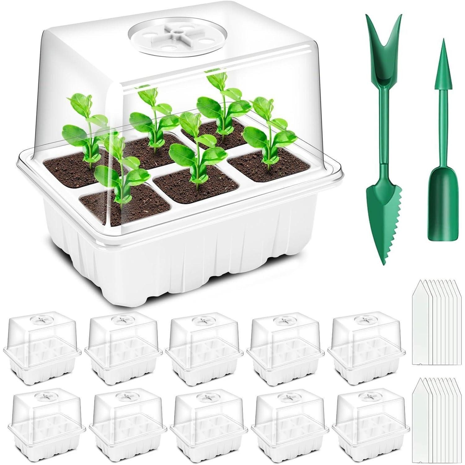 Stelle dir vor, du startest dein Setzlings-Abenteuer mit dem YAUNGEL Zimmergewächshaus in der 6 Zellen Weiß-Variante. Es ist kompatibel mit Heizmatte und Pflanzenlicht, sodass du auch in kühleren Zeiten eine konstante Wärmebasis schaffst – halte dabei die Temperatur unter 48°C, um das beste Wachstum zu fördern. Der verstellbare Deckel sorgt für die richtige Luftfeuchtigkeit, während die transparente Saatgut-Streuung dir jeden Schritt deines Wachstums zeigt. Dank der Abflusslöcher bleibt die Erde locker, und deine Wurzeln entwickeln