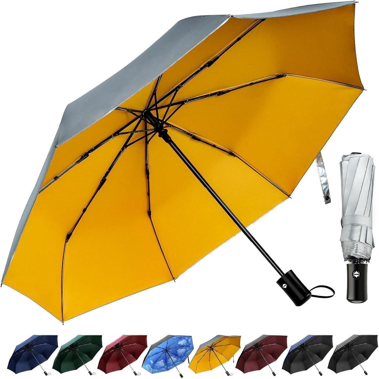 Wähle TechRise Regenschirm – den Regenschirm Sturmfest mit Automatischer Öffnung & Schließung, der sich durch Tragbarkeit, Haltbarkeit und Stil auszeichnet. Dieser tragbare & faltbare Taschenschirm ist die ideale Wahl für Männer, Frauen und Kinder – silbrig-gelb,