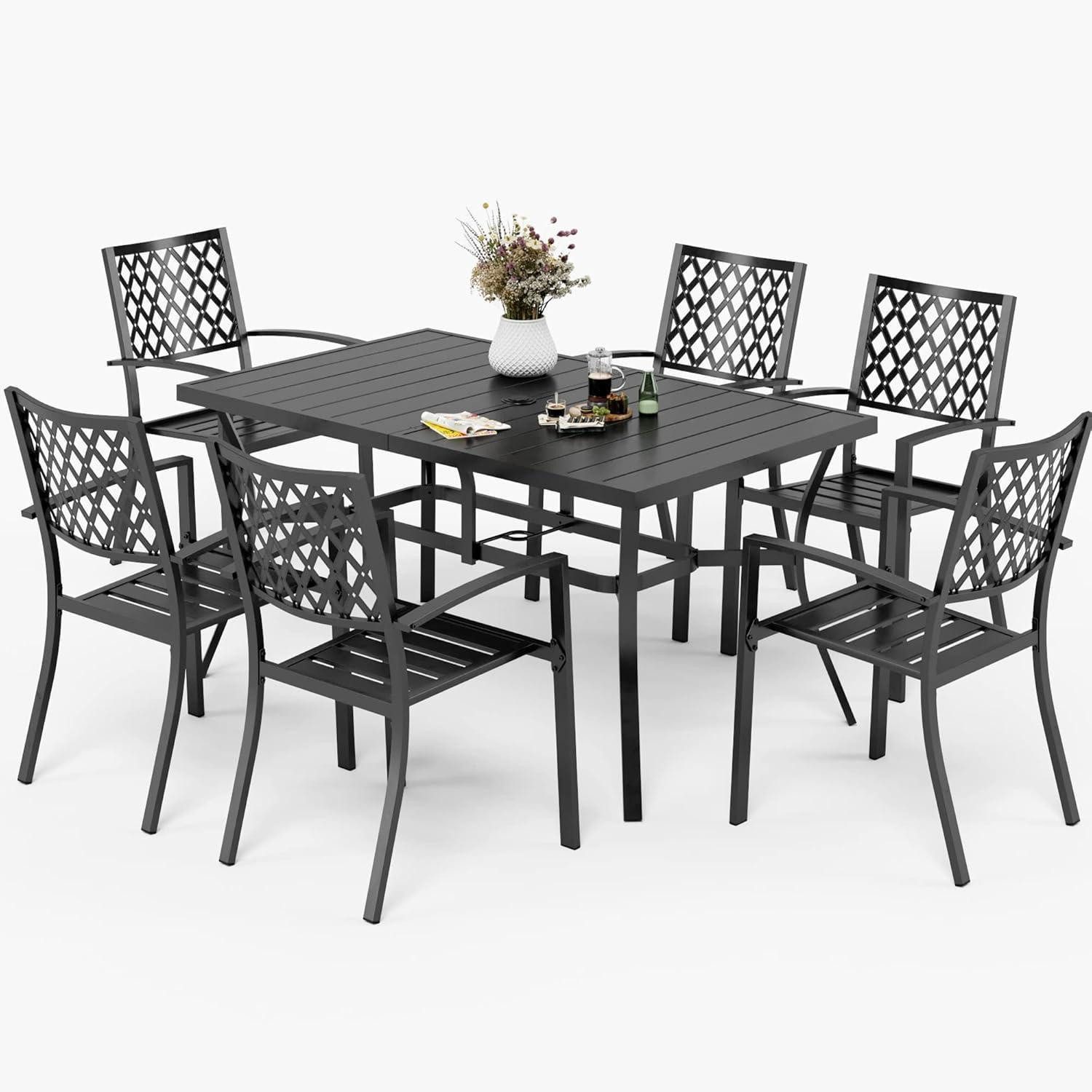 Stell dir vor: Die Sonne lacht, der Garten ruft – und du bist bereit für unvergessliche Momente im Freien. Dieses Gartenmöbel-Set aus pulverbeschichtetem Metall verbindet Stabilität, Pflegeleichtigkeit und den markanten Style von Style 3. Der Gartentisch misst 152 x 96 x 72 cm, die Stühle 64 x 58 x 89 cm, und in der Tischmitte wartet ein 4 cm großes Schirmloch mit Abdeckung auf dein Sonnenschutz- oder Beleuchtungskonzept. Das Set wird in 4 Paketen geliefert – falls du eines erhältst, warte einfach auf die restlichen Lieferungen, du bekommst bald dein komplettes Outdoor-Wunderland. Mit diesem Ensemble bist du bestens gerüstet für Jahre Freude im Freien.