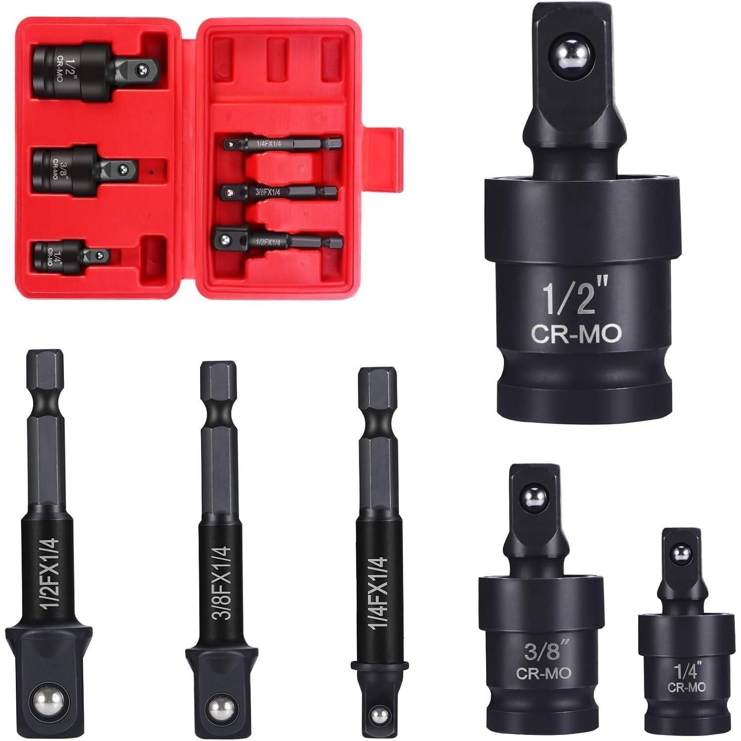 Du willst beim Schrauben nie wieder Zeit mit dem Suchen der richtigen Adapter verschwenden? Dann ist CJT001 dein Schlüssel. Dieses 6-teilige Stecknuss-Adapter-Set vereint 3 Bohrmaschinenadapter (1/4", 3/8", 1/2") mit 3 Universalsteckdosen (1/4", 3/8", 1/2") – perfekt, um Drehmomentschlüssel, Bohrmaschinen, Steckschlüssel und Ratschenschlüssel zuverlässig zu verbinden. Dank Kardangelenk und 360-Grad-Flexibilität kommst du auch in engen Ecken auf jede Schraube zu.