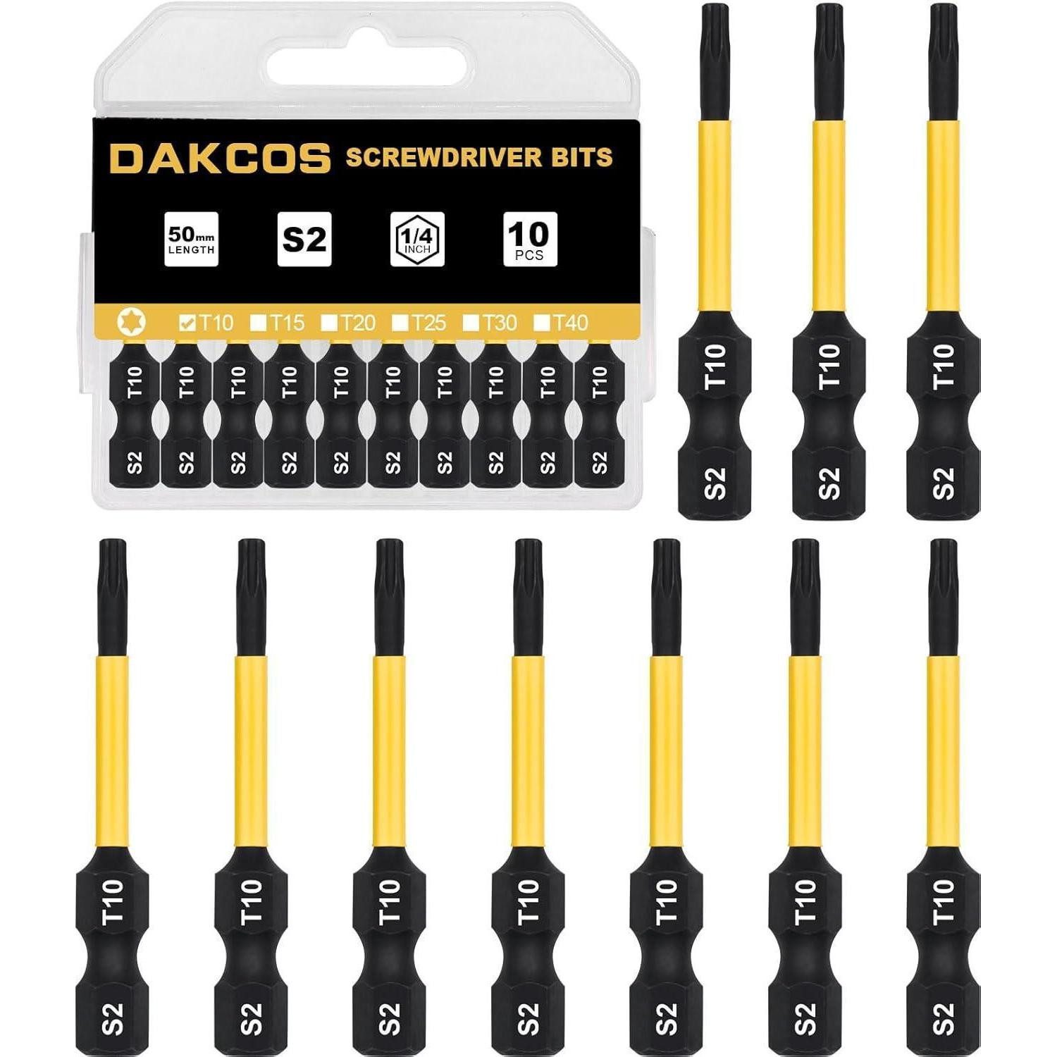 In der Praxis wird diese T10-Bit Box zum stillen Helden deiner Werkstatt: 50 mm lange Bits aus S2-Stahl, gehärtet und phosphatiert, sitzen sicher in jedem 1/4"-Sechskantantrieb und begleiten dich durch Möbelaufbau, Reparaturen und schnelle Montagearbeiten. Dieses Bit-Sortiment aus S2 liefert dir Torx Bits der Qualität, die du verdienst – inklusive dem DAKCOS T10 Bit lang, einem klassischen Torx Bit T10. Die Box mit 10 Bits sorgt dafür, dass du nie lange suchen musst. Und falls du Fragen hast, kontaktiere uns bitte.