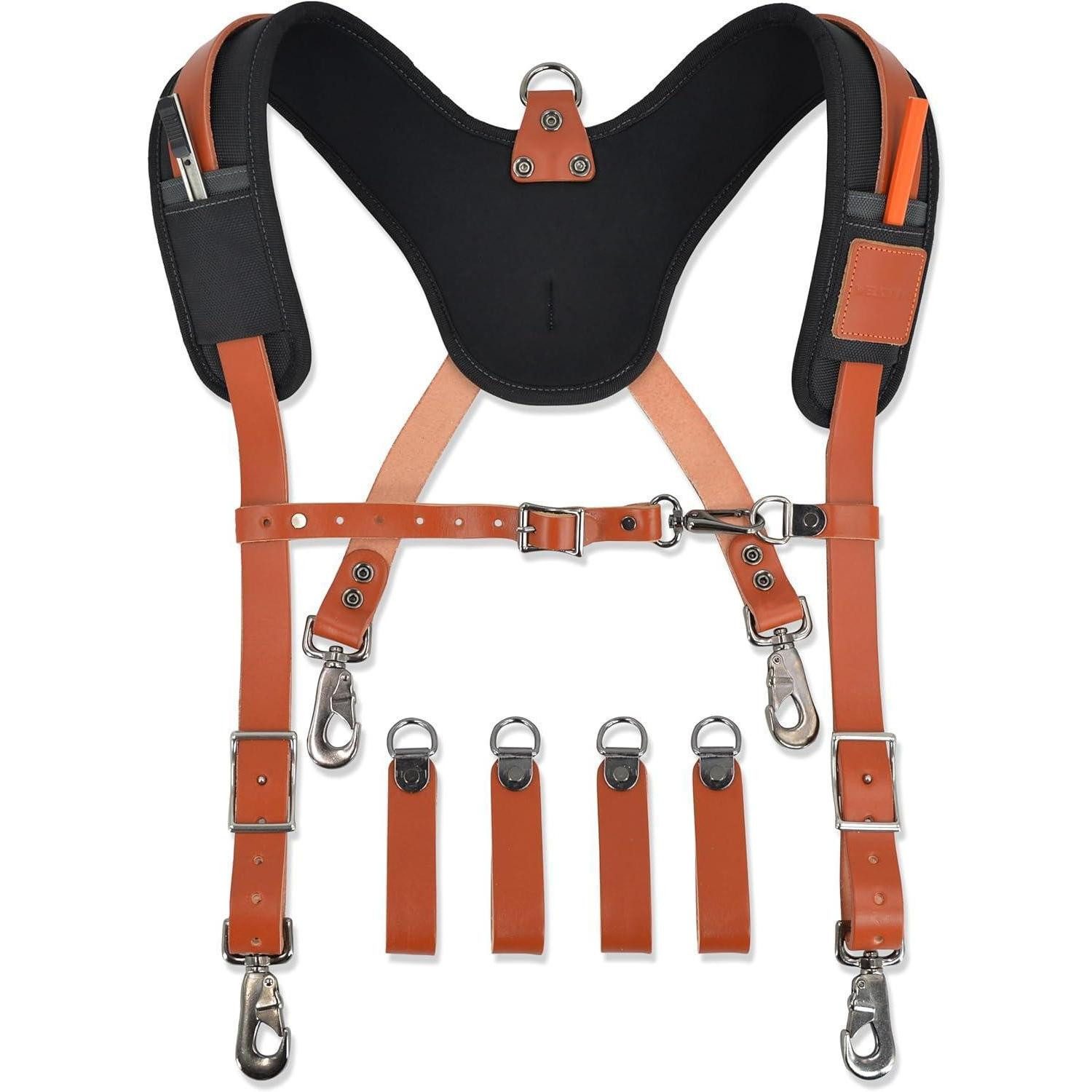 Dieses robuste Leder-Werkzeuggürtel-Hosenträger-Set passt zu Bauwerkzeuggürtel, Gerüstwerkzeuggürtel, Rahmenwerkzeuggürtel und Eisenarbeiter-Werkzeuggürtel und sorgt für festen Halt der Werkzeuge