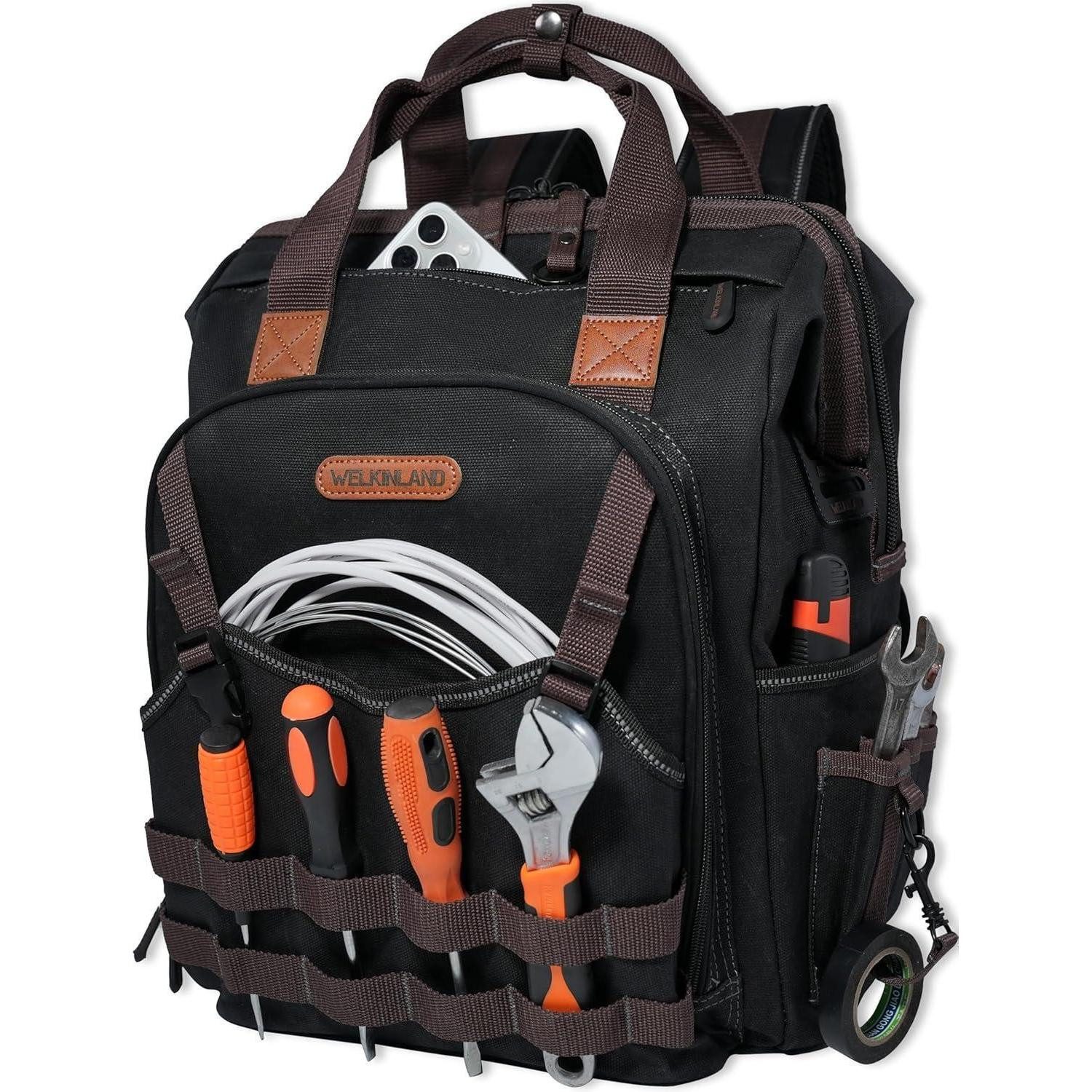 Er eignet sich als robuster Elektrikerwerkzeug-Rucksack, offener Techniker-Werkzeug-Rucksack oder Bau-Werkzeugtasche und überzeugt mit bequemer Tragweise, einfacher Zugänglichkeit und langlebiger Verarbeitung.
