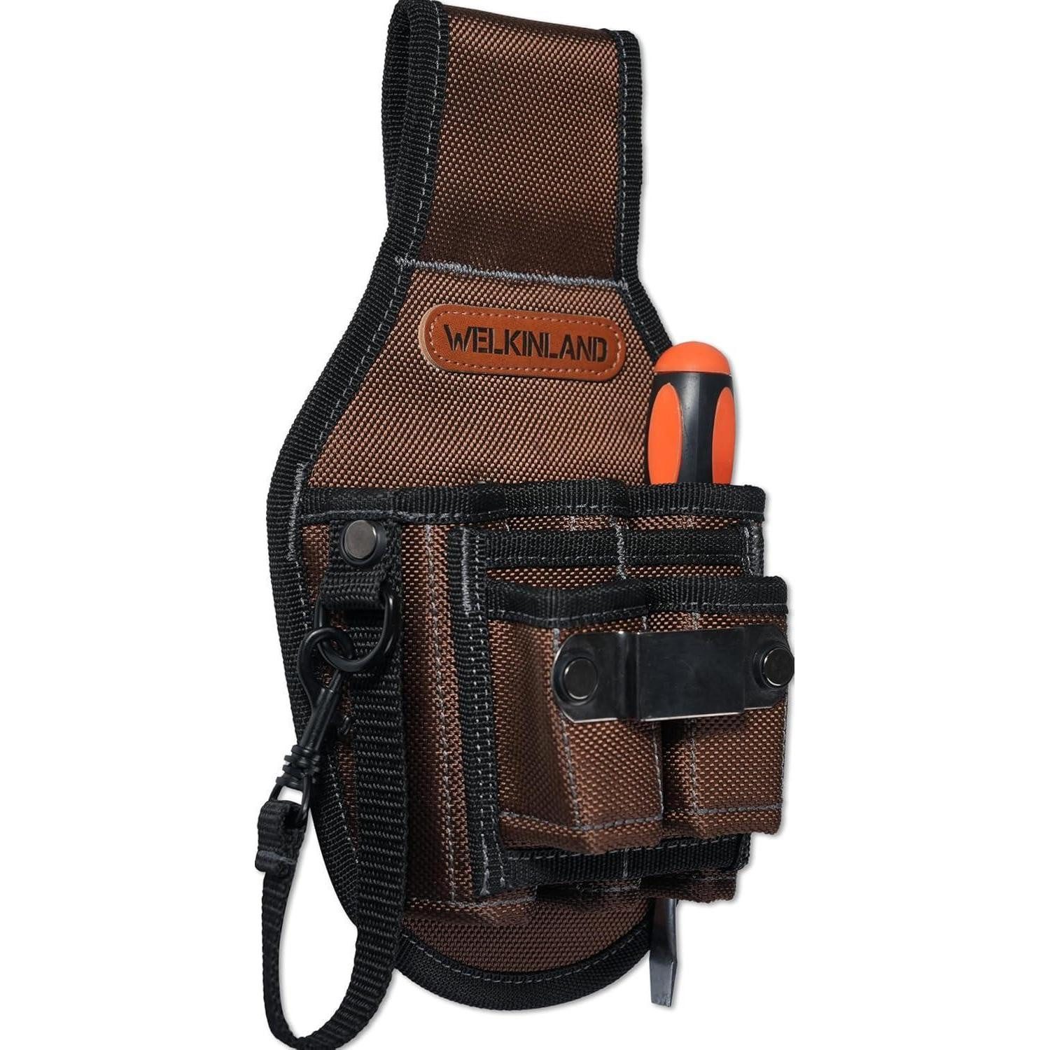 Diese kompakte Werkzeugtasche mit 7 Taschen lässt sich bequem am Gürtel tragen und ist ideal für kleine Elektrikerarbeiten. Ihr ergonomisches Design sorgt für schnellen Zugriff und ordentlichen Werkzeugtransport.