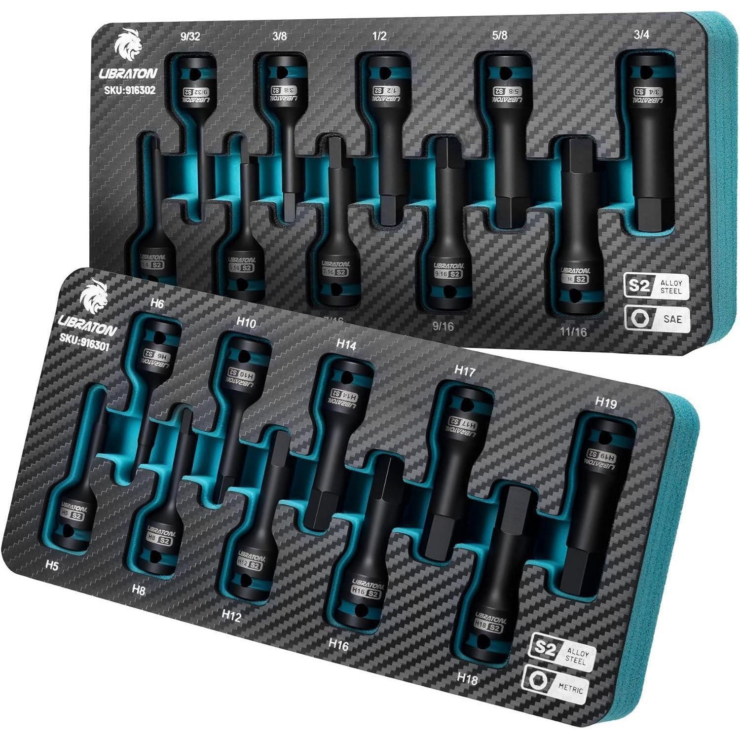Stell dir vor, du arbeitest mit dem LIBRATON Schlag Hex Bit Steckschlüssel-Set – 20-tlg, aus S2-Stahl, mit 1/2"-Kraft. Es vereint Metrisch + Imperial, ist ideal für Autoreparaturen und Bauprojekte und wird durch die XPE-Aufbewahrung organisiert gehalten. Die lasergravierten Größen erleichtern die Identifikation, das einteilige Design erhöht die Haltbarkeit, und die manganphosphatbeschichtung schützt zuverlässig gegen Rost. Dieses Set ist so geschaffen, dass du jede Herausforderung problemlos meisterst – mit hoher Verschleiß- und Schlagfestigkeit, das Torque- bis ASME-Standard-Referenzen übertrifft