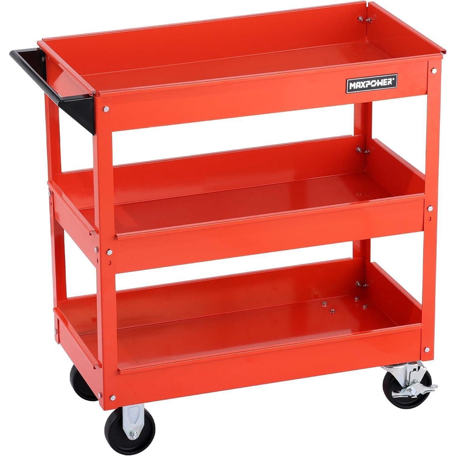 Lieferumfang: M08125 × 1; 4 flexible Rollen ermöglichen müheloses Bewegen zwischen Werkstatt und Arbeitsbereich; Tragkraft 450 kg, verteilt auf 3 Ebenen; gefertigt aus kaltgewalzten Blechen und Winkeleisen mit robustem Metallrahmen; ideal für Kleinteile und große Werkzeuge in Werkstatt, Garage oder Lager