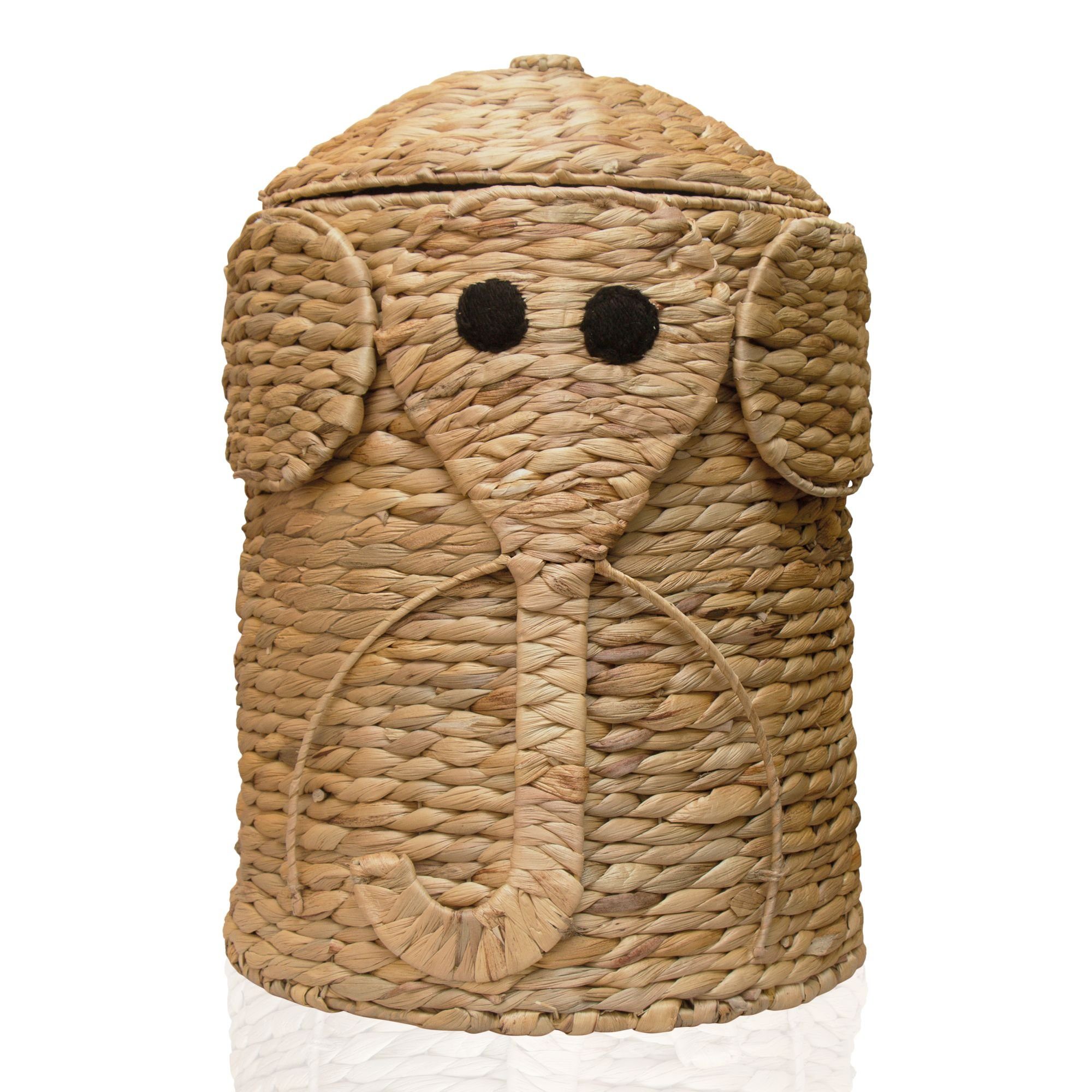 Tierisch gut, wird’s mit dem neuen Wäschekorb im Elefanten-Design. Unser Wäschesammler eignet sich zum Aufbewahren verschiedenster Dinge: Wäsche, Handtücher, kleine Gegenstände oder Spielzeug. Er schafft Ordnung und wirkt durch das Tiermotiv zugleich dekorativ. Durch seine natürliche Optik ist er ideal als Deko für das Kinderzimmer geeignet. Aufgrund seiner hochwertigen Verarbeitung ist er stabil und langlebig. Der Deckel ist abnehmbar. Wasserhyazinthe ist ein natürlich nachwachsender Rohstoff. Bitte beachte, dass Wasserhyazinthe in Verbindung mit Feuchtigkeit zur Stockbildung neigen kann. Daher bitte keine feuchte oder gar nasse Kleidung dauerhaft in dem Wäschesortierer aufbewahren.