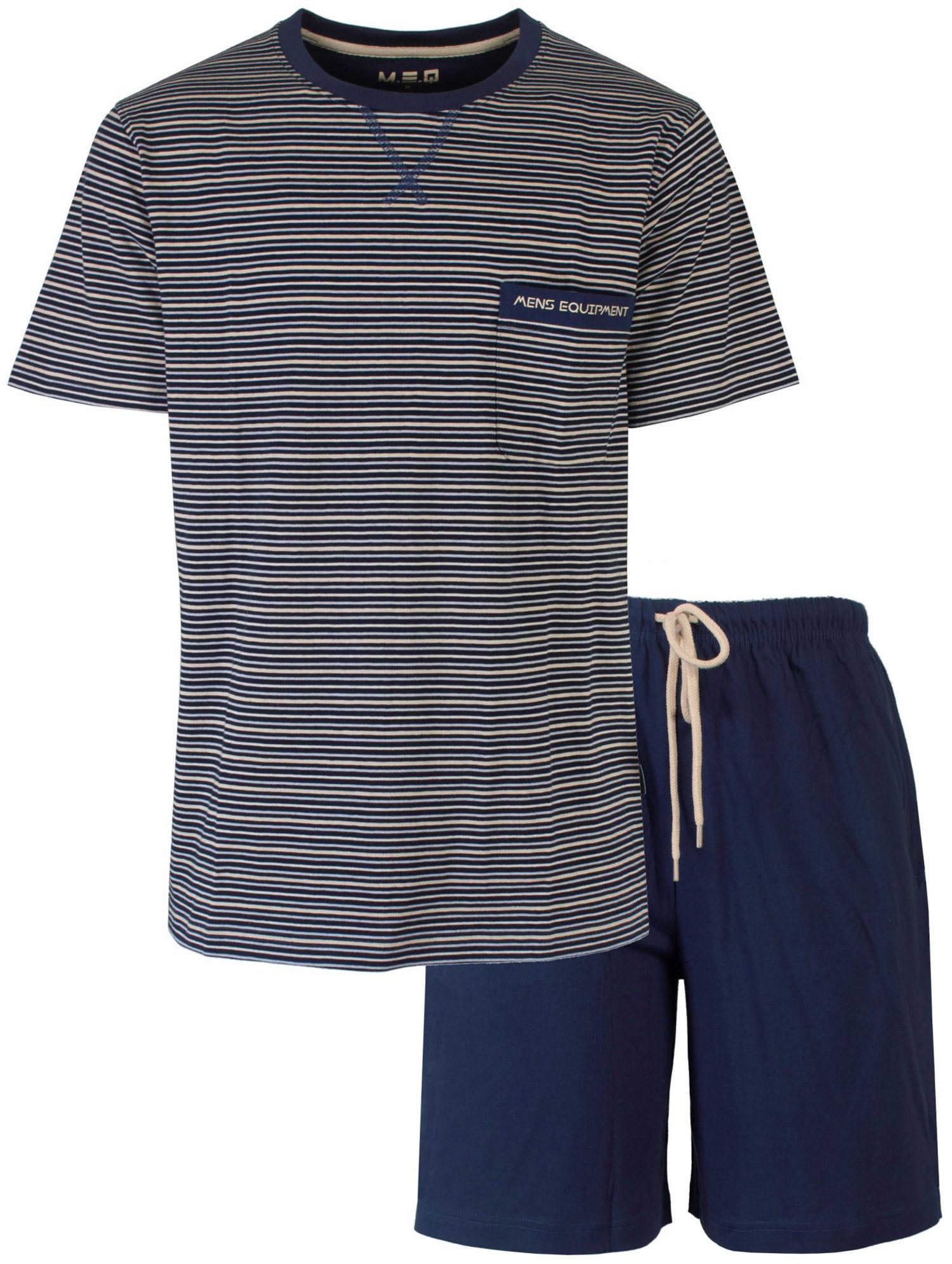 Der M.E.Q. Herren Schlafanzug zeichnet sich durch seine komfortable und bequeme Ausführung aus. Das Oberteil verfügt über kurze Ärmel und einen Rundhalsausschnitt, was für optimale Bewegungsfreiheit und Atmungsaktivität sorgt. Die kurze Hose ist am Bund mit einem Gummizug ausgestattet und verfügt zusätzlich über einen Tunnelzug, um die Passform individuell anzupassen. Die Verwendung von 100% Baumwolle und Melange: 85% Baumwolle, 15% Polyester, als Material gewährleistet ein angenehmes Tragegefühl und sorgt dafür, dass der Schlafanzug besonders hautfreundlich ist. Baumwolle ist bekannt für ihre Atmungsaktivität und ihre Fähigkeit, Feuchtigkeit von der Haut aufzunehmen, was gerade für einen erholsamen Schlaf von Vorteil ist. Praktisch und funktional ist die Brusttasche auf der linken Seite des Oberteils, die Platz für kleine Utensilien bieten kann. Insgesamt ist dieser Schlafanzug eine ideale Wahl für gemütliche Nächte und entspannte Stunden zuhause.