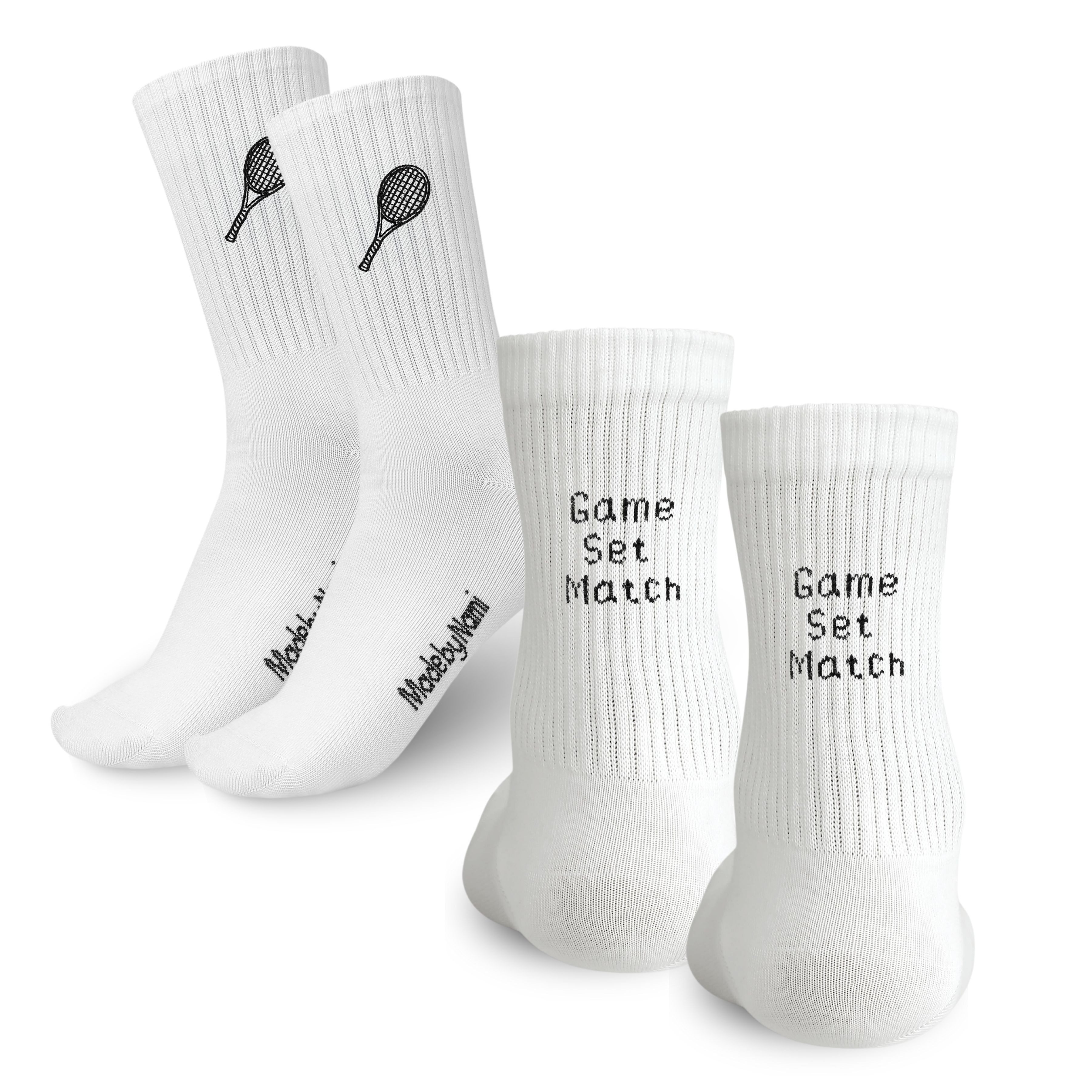 Dieses 2er Set weißer Tennissocken kombiniert sportlichen Stil mit kreativen Details. Mit hochwertiger Stickerei und einem humorvollen Spruch auf der Rückseite sind die Socken ein echter Hingucker für Tennisfans und Liebhaber aktiver Lebensstile