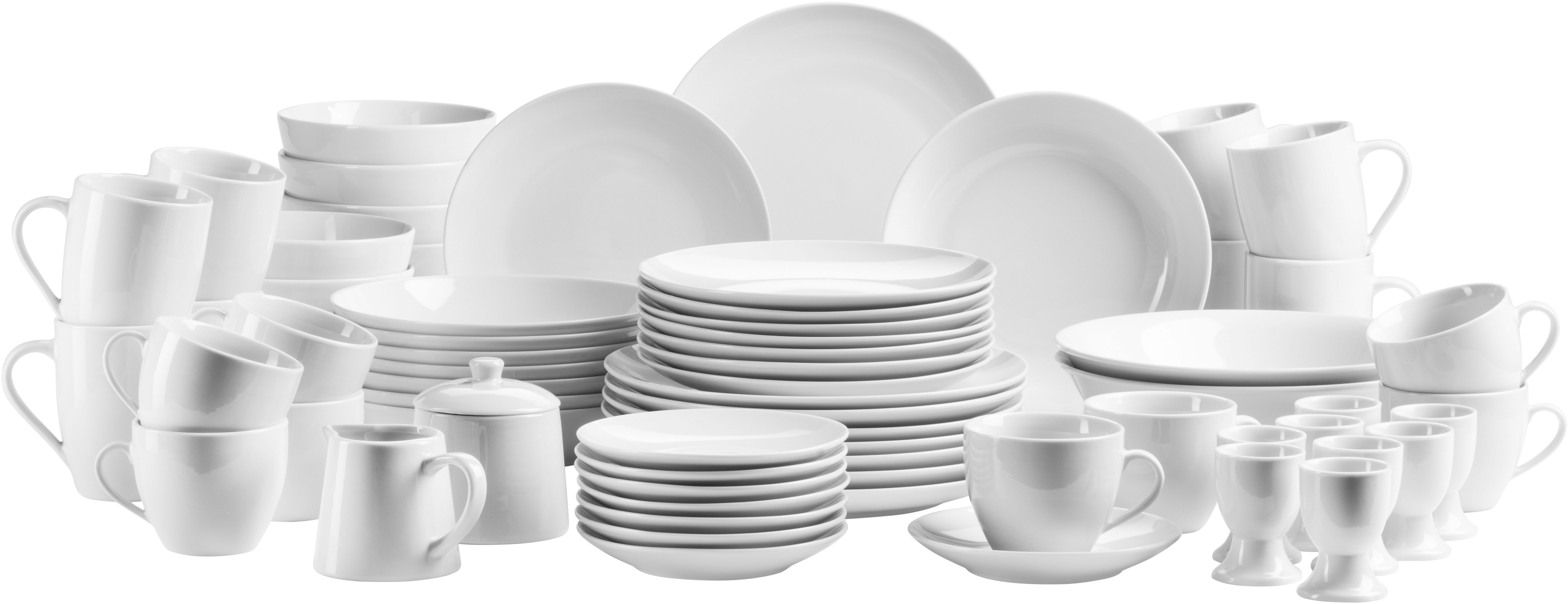 Ein paar Farbkleckse kombiniert mit weißem Porzellan – et voilà: es ist angerichtet! Die Serie BARCA mit ihrer angesagten schlichten Coupe-Form lässt Platz für Ihre Dekoration und stellt Ihre kulinarischen Kreationen in den Vordergrund. Ob im Alltag oder zu besonderen Anlässen: BARCA ist Ihr zeitlos-elegantes Porzellangeschirr der Traditionsmarke MÄSER, das Sie über viele Jahre begleiten wird. Mit diesem umfangreichen 68-teiligen Kombiservice für 8 Personen statten Sie Ihren Haushalt mit allen wichtigen Essgeschirr-Komponenten aus. Das Geschirrservice ist dauerhaft spülmaschinen- und mikrowellengeeignet, und dadurch äußerst pflegeleicht. Es wird in einer speziell für dieses Set entwickelten, vielfach getesteten Transportverpackung aus umweltschonenden Materialien versendet. Dieses 68-teilige Service Set aus weißem Porzellan enthält 8x Essteller flach, 8x Suppenteller tief, 8x Dessertteller, 8x Müslischale, 8x Kaffeebecher (290 ml), 8x Kaffeetasse mit Untertasse (230 ml), 8x Eierbecher, 2x Salatschüssel, 1x Zuckerdose und 1x Milchkännchen