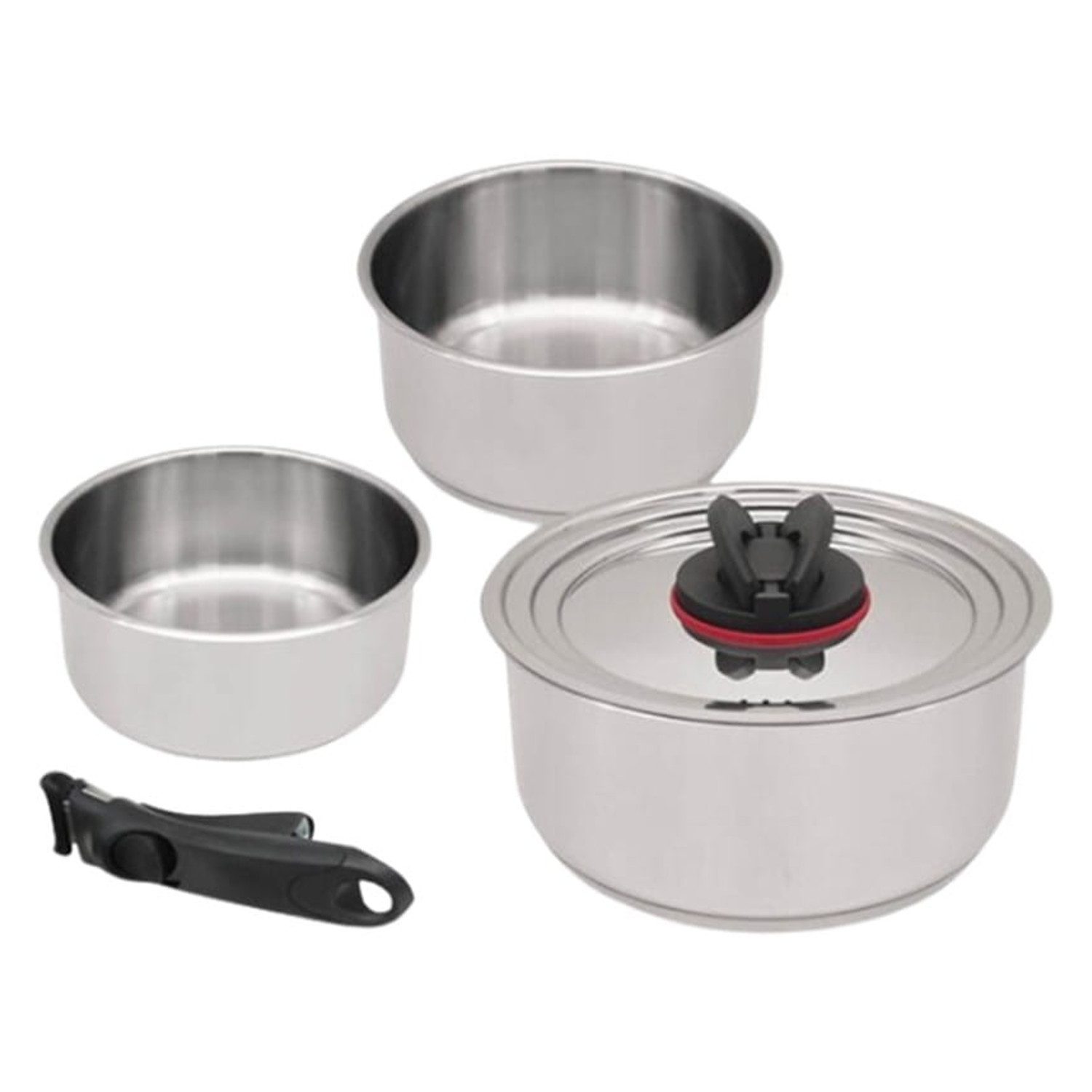Ein äußerst praktisches Merkmal dieses Sets ist der abnehmbare Griff, der eine einfache Aufbewahrung und Reinigung der Töpfe ermöglicht. So passen sie problemlos in Ihren Küchenschrank oder in die Spülmaschine.