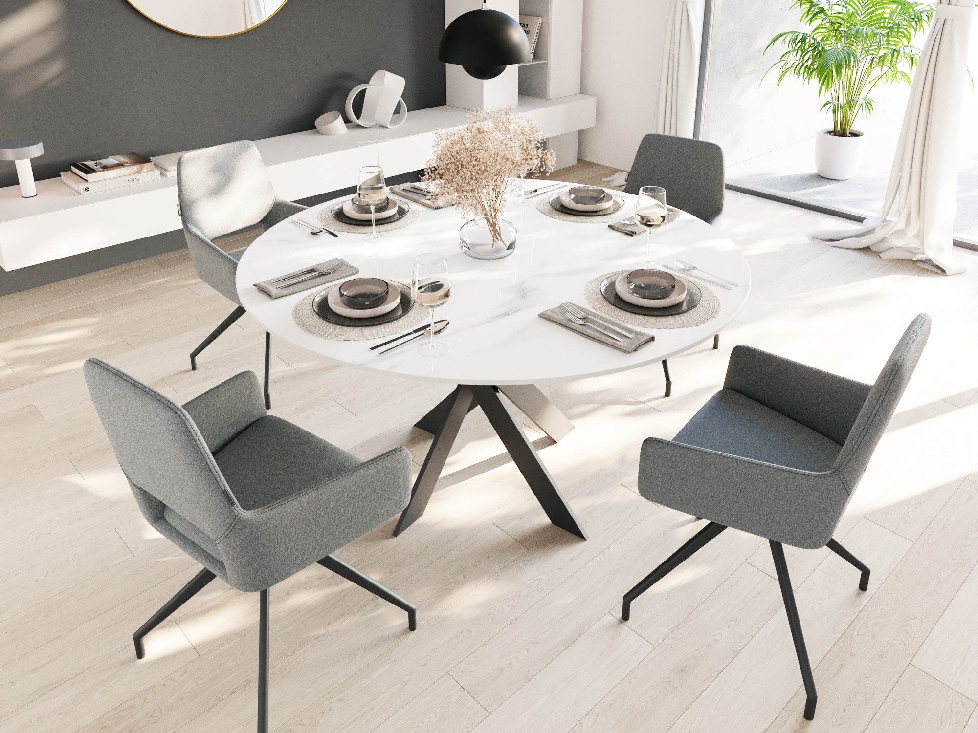 Esszimmerstühle mit Stoffbezügen bestechen durch ihre zeitlose Eleganz. Das moderne Aussehen in Kombination mit der angenehmen Haptik werten Ihr Esszimmer auf und sorgen für eine gemütliche und angenehme Atmosphäre, in der man lange verweilen möchte. Dank des Sitzkomforts verführt der Esszimmerstuhl zu langen Gesprächen, ausgiebigen Essen oder geselligen Runden.