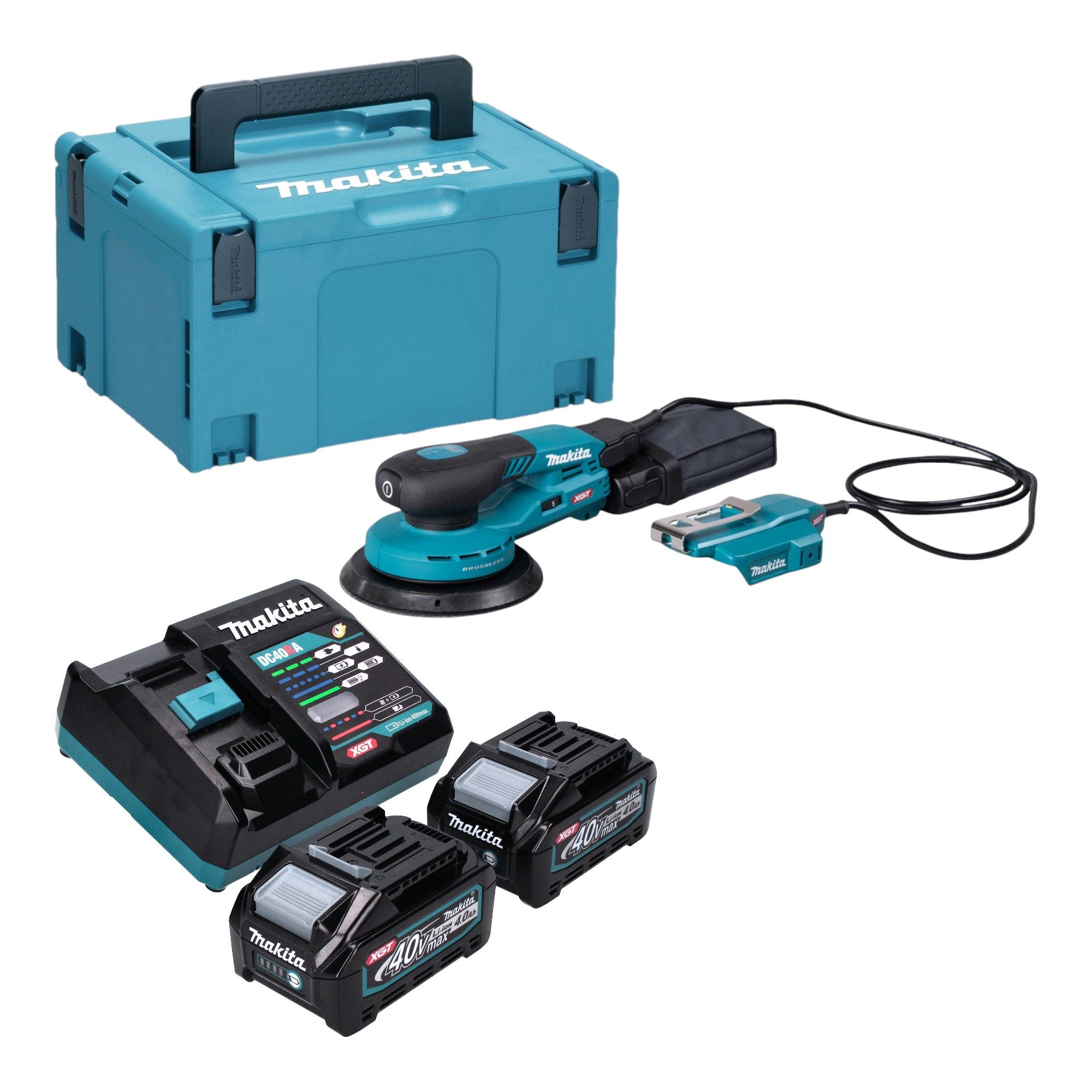Der Makita BO004CG Exzenterschleifer zeichnet sich durch seine kompakte Bauweise und das geringe Gewicht aus, was ihn besonders handlich macht. Dies wird durch die separate Stromversorgung ermöglicht, bei der der Akku über ein Adapterkabel angeschlossen wird und beispielsweise am Gürtel getragen werden kann. Eine optionale Stromversorgung ist durch den Einsatz einer 40V max. Akku oder einer PDC-Akku-Bank möglich. Eine effiziente Staubabsaugung ist durch die Grundplatte gewährleistet, welche Staub direkt in eine integrierte Staubbox leitet oder eine externe Absaugung ermöglicht. Letztere kann über das Auto-Start Wireless System (AWS) gesteuert werden, welches sich mittels Bluetooth mit einem Staubsauger verbindet. Der Exzenterschleifer ist mit einem bürstenlosen Motor ausgestattet, der nicht nur wartungsfrei und langlebig ist, sondern auch durch die Konstantelektronik eine gleichbleibende Drehzahl garantiert. Dadurch wird ein gleichmäßiges Schleifergebnis über alle Materialien hinweg sichergestellt. Die regelbare Dreh- und Exzenterbewegung trägt zusätzlich zur Flexibilität und hohen Effizienz bei der Arbeit bei.