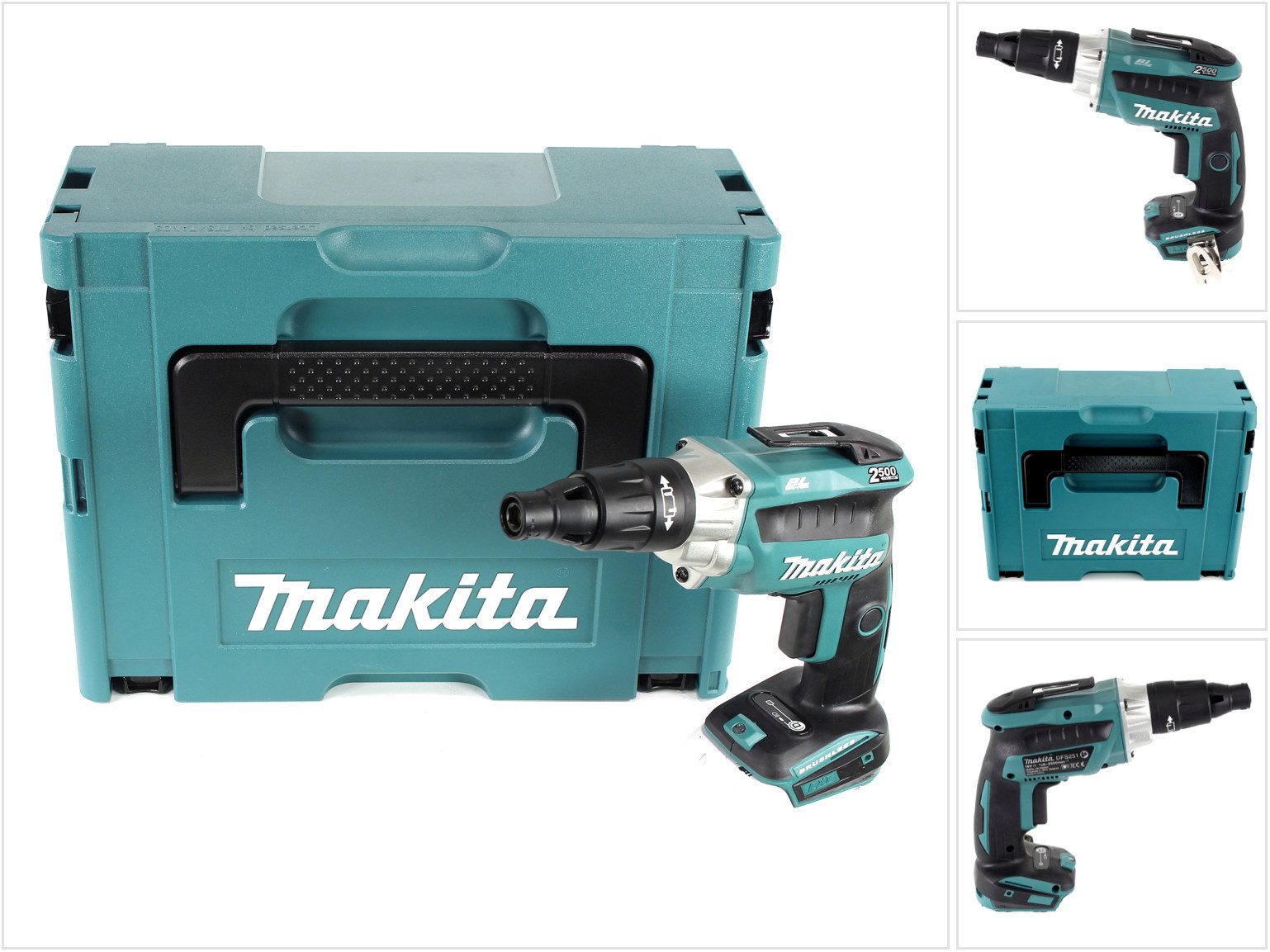 - 1x Makita DFS 251 18 V Li-Ion Brushless Trockenbauschrauber
