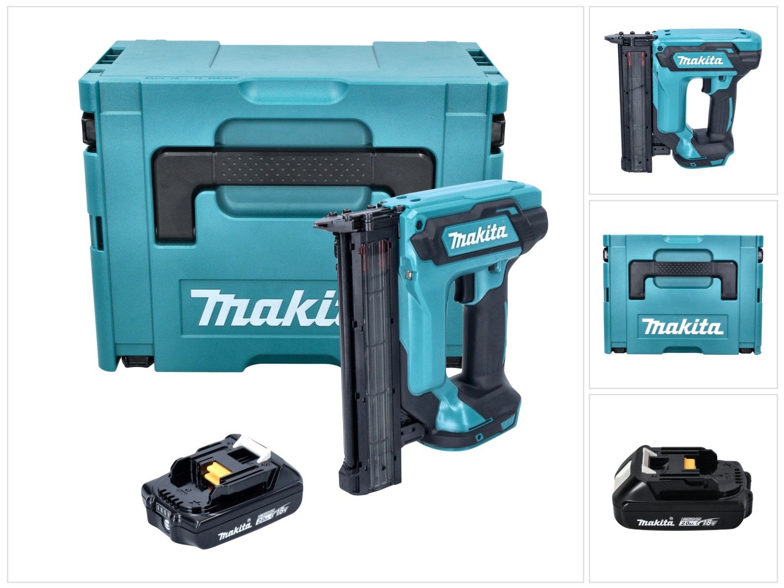 Makita bietet hier mit dem DFN 350 einen handlichen und kraftvollen Akku Stauchkopfnagler der durch seinen Akku vollkommen unabhängig von Kompressor und Schlauch. Es lassen sich unterschiedliche Stiftlängen von 15 - 35 mm einsetzen und das Gerät eignet sich zum Befestigen von Deko Leisten, Fußleisten und Textilien. Durch den ummantelten Handgriff ermöglicht der DFN 350 einen sicheren Halt und ein angenehmes Greifgefühl. Die Einschaltsperre verhindert ein unbeabsichtigtes Auslösen und schützt damit vor Verletzungen. Durch die leuchtstarke LED sind auch Arbeiten an schlechtMakita ist ein führender Hersteller für Elektrowerkzeug, der sich vor allem durch hohe Verarbeitungsqualität und ein riesiges 18 V Ökosystem auszeichnet.