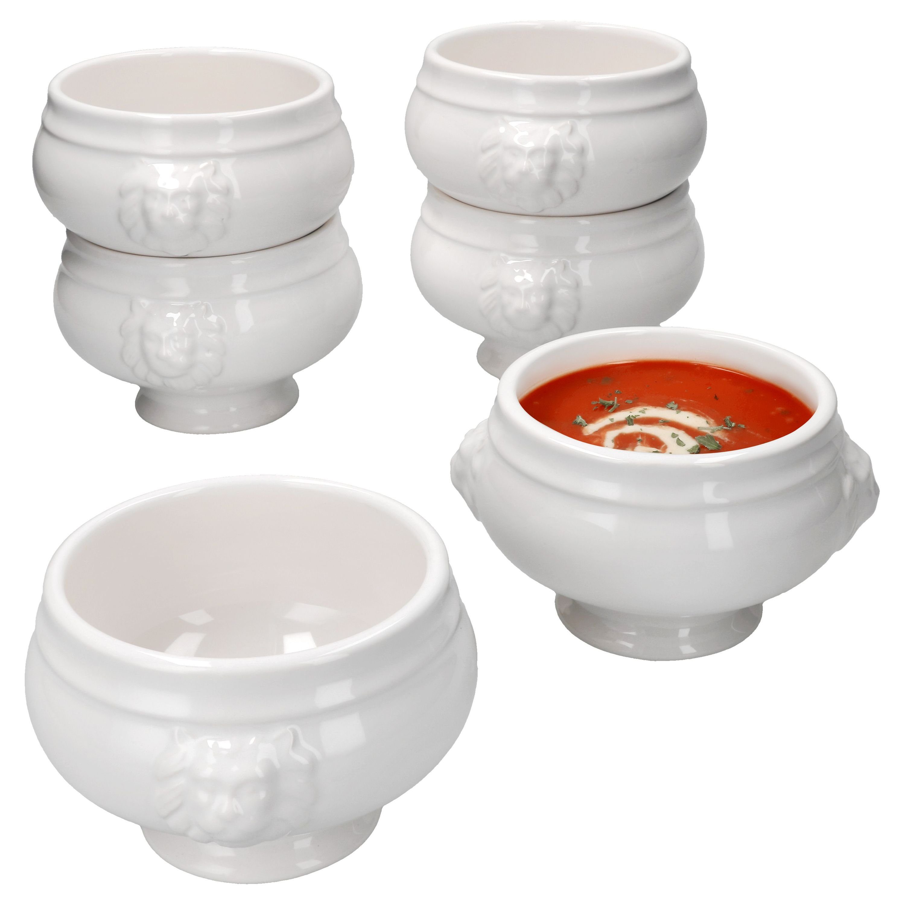 MamboCat Suppenschüssel 6x LEO Löwenkopf-Terrinen 450ml weiß 6 Personen, Steingut