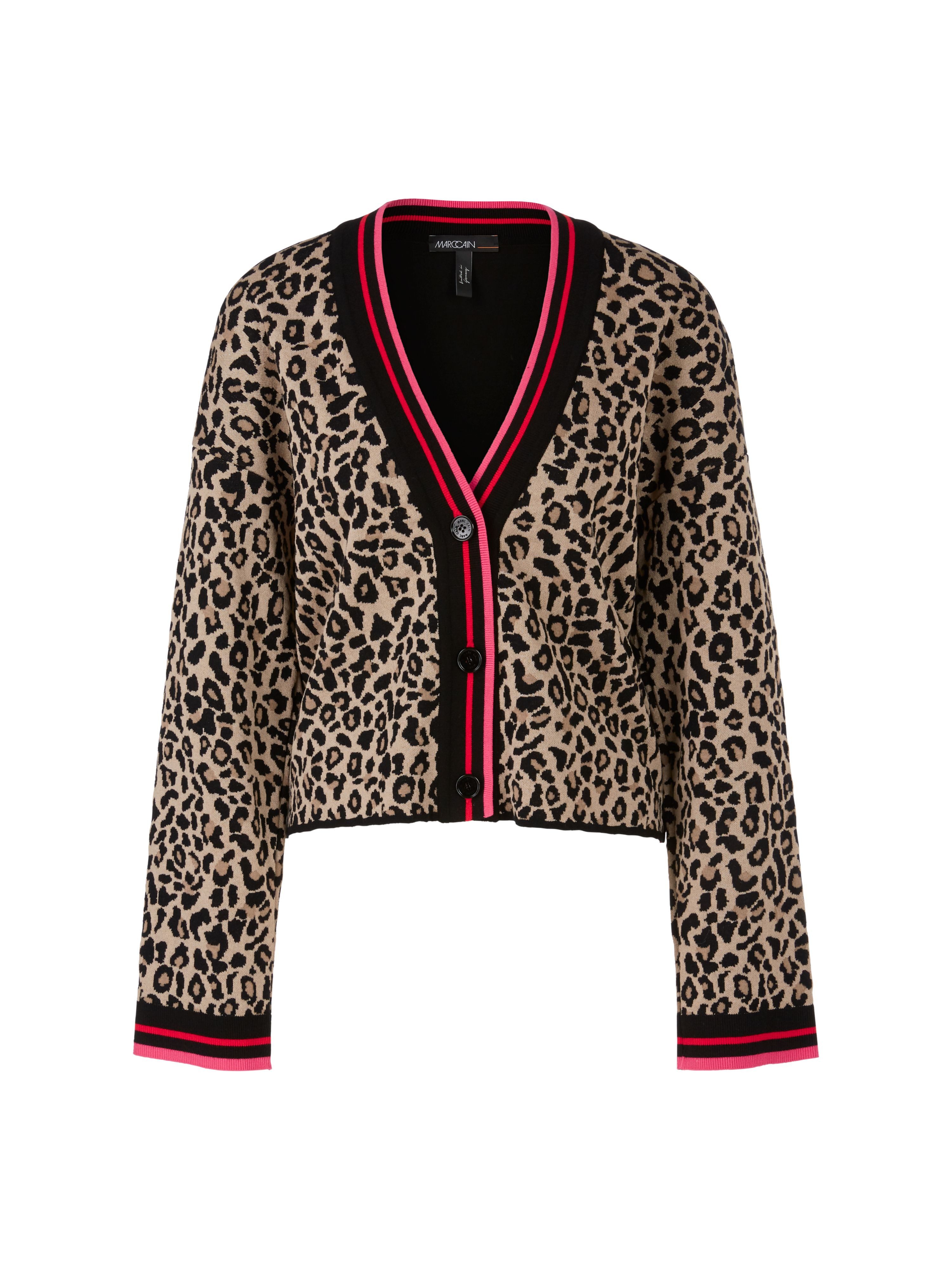 Cardigan Knitted in Germany|Weiter Cardigan aus viskosebasiertem Fasermix und mit weichfließender Kontur. Front und Ärmel sind gemustert, das Rückenteil ist Uni. Das Leo-Dessin wird durch Streifeneinfassungen an den Kanten akzentuiert. Der Cardigan ist Knitted in Germany: Er wird mit modernsten Technologien in Deutschland gestrickt und veredelt. Die einzelnen Teile - wie Rücken- und Vorderteil etc. - werden in europäischen Partnerbetrieben zusammengenäht.|Gerade Form|Knitted in Germany|V-Ausschnitt|Knopfverschluss|Das Model ist 179 cm groß und trägt N3/38.