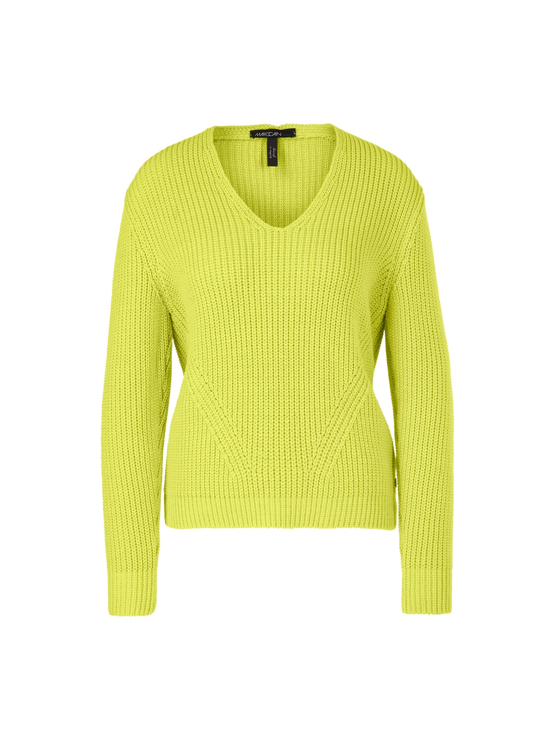 V-Neck-Pullover Knitted in Germany|Der Pullover kommt im legeren Patentmuster, das durch diagonale Streifen interessante Akzente erhält. Er besitzt einen V-Neck und kleine Seitenschlitze. Die Silhouette ist gerade geschnitten. Der Pullover wird im Material-Mix mit Baumwolle am Standort Deutschland gestrickt und auch veredelt. Die Weiterverarbeitung der einzelnen Teile erfolgt in europäischen Partnerbetrieben. Damit ist das Modell ?Knitted in Germany?.|Gerader Schnitt|Knitted in Germany|Mit Seitenschlitzen|V-Ausschnitt|Das Model ist 179 cm groß und trägt N3/38.