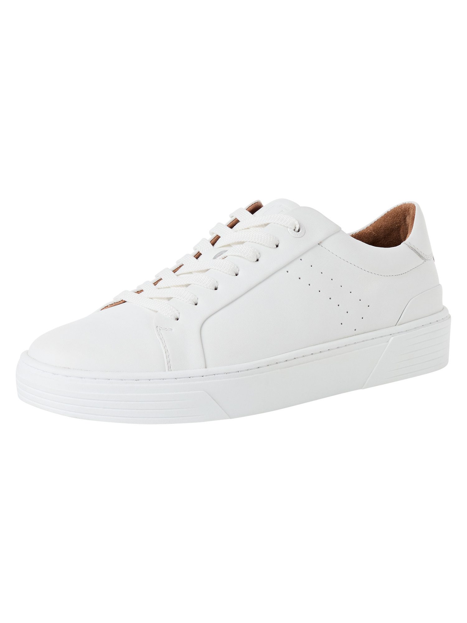 Sportliche Eleganz trifft auf durchdachten Komfort: Dieser Sneaker aus der MT SPORT Kollektion von MARCO TOZZI überzeugt mit seinem hochwertigen Leder-Obermaterial und der praktischen F-Weite für ein angenehmes Tragegefühl – selbst wenn der Tag aktiv wird. Das markante Design mit modischer Plateausohle von 25 mm Höhe und rundum stabiler Sohle sorgt nicht nur für einen frischen, urbanen Look, sondern verleiht auch leichten Auftritt und sicheren Halt bei jedem Schritt. Die rund geformte Schuhspitze ist ein klassisches Detail, das die sportive Silhouette perfekt ergänzt und deinen Füßen genügend Freiraum bietet. Dank der klassischen Schnürung lässt sich die Passform individuell anpassen, sodass sich der Sneaker optimal an deine Bedürfnisse anschmiegt. Besonders praktisch: Das herausnehmbare Fußbett ermöglicht dir, eigene Einlegesohlen zu verwenden und damit deinen persönlichen Komfort zu maximieren. Mit einer Schafthöhe von 6 cm eignet sich dieser Sneaker hervorragend für den Alltag, den entspannten Stadtbummel oder sportive Freizeitaktivitäten – der ideale Begleiter für Herren, die Wert auf Premium-Qualität und vielseitigen Style bei jeder Witterung der Übergangszeiten legen. Kombiniere diesen Allrounder mit Chinos oder Jeans und setze so ein sportlich-lässiges Statement mit Wohlfühlgarantie.