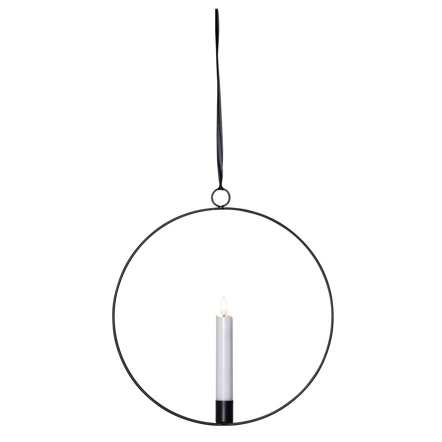 Dekoring mit LED Kerze Flamme - mit Aufhänger - D: 28,5cm - Timer - Batterie - schwarz