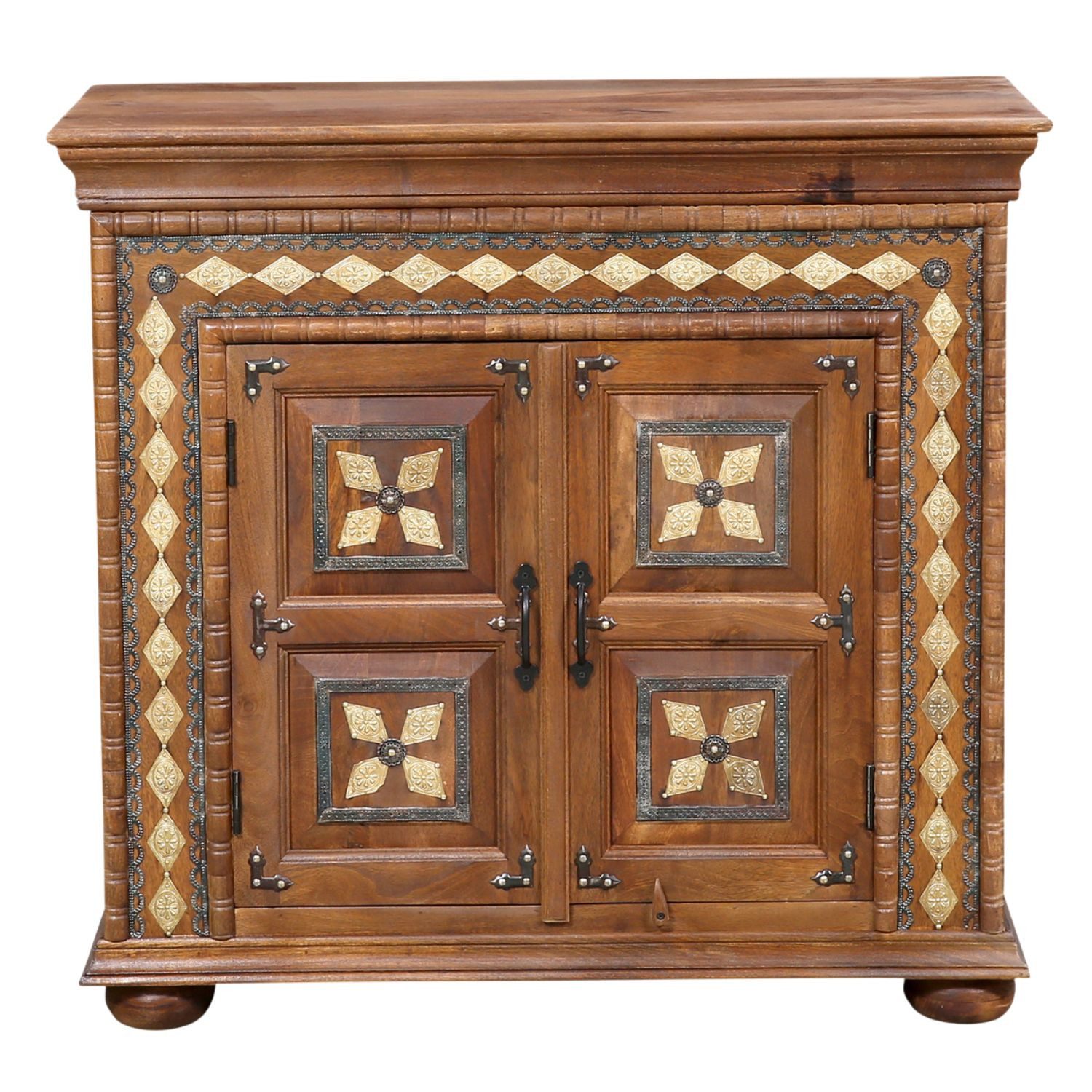 Die Kommode Abtin ist ein handgefertigtes Schmuckstück aus massivem Mangoholz. Mit kunstvollen Messingintarsien und detailreichen Schnitzereien im orientalischen Design wird sie zum Highlight in jedem Raum. Die warme Holzfarbe und die sorgfältige Verarbeitung machen diese Kommode zu einem langlebigen Möbelstück voller Charakter und Eleganz.