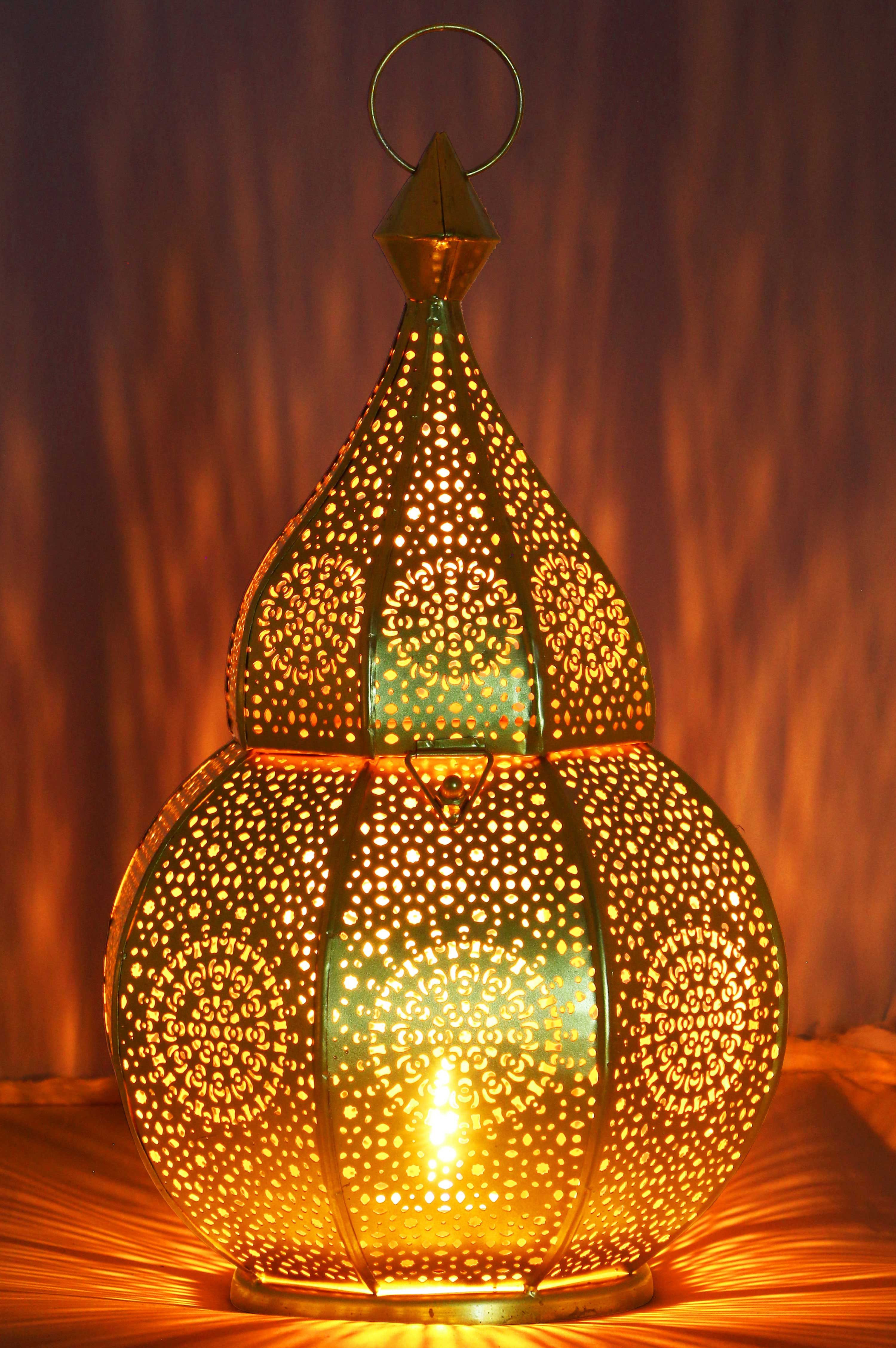 Marrakesch Orient & Mediterran Interior Teelichthalter Windlicht Anaram weiß goldfarben orientalisch Metall Handarbeit H 32cm (1 St), Handarbeit