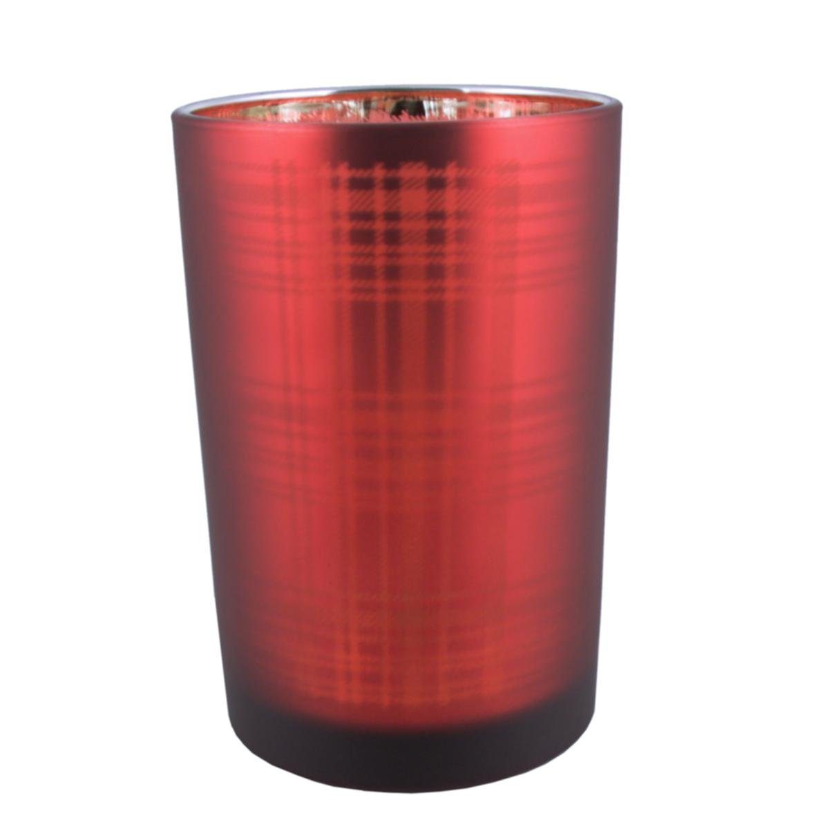 Ein Stück Glas-Windlicht, rote Karos, von Mars & More B.V., ca. 18 cm H