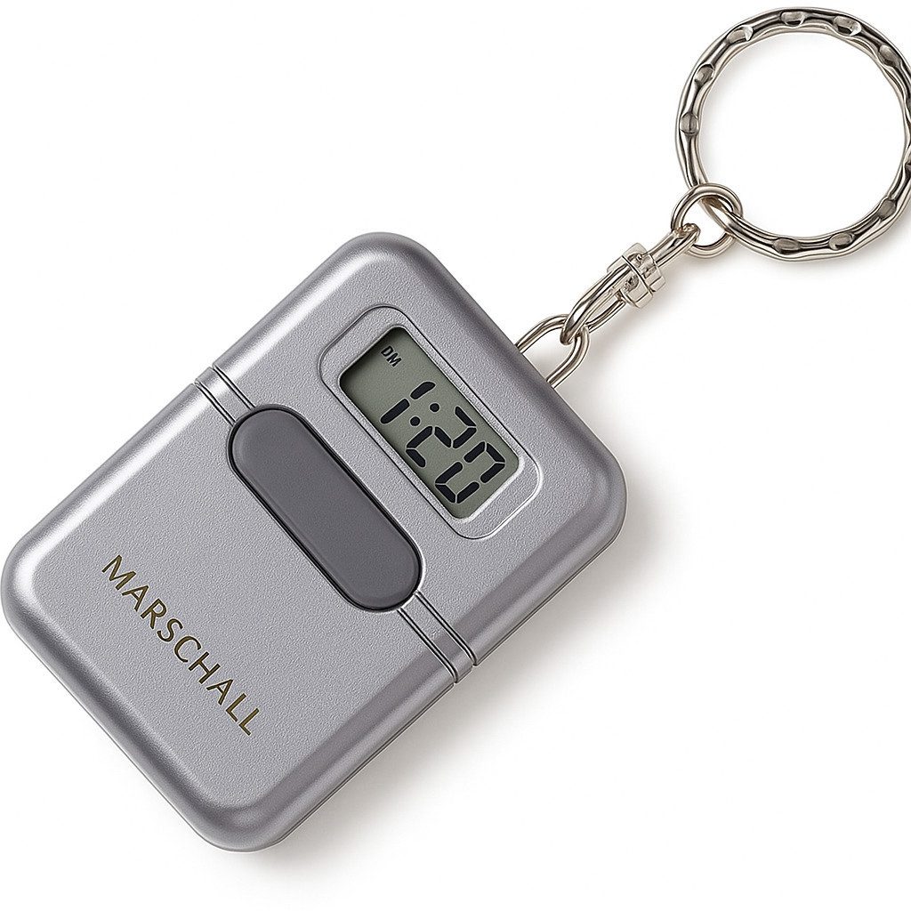 Kompakt und praktisch: Die Uhr ist leicht am Schlüsselbund zu befestigen, sodass Sie Ihre Zeitansage überallhin mitnehmen können.