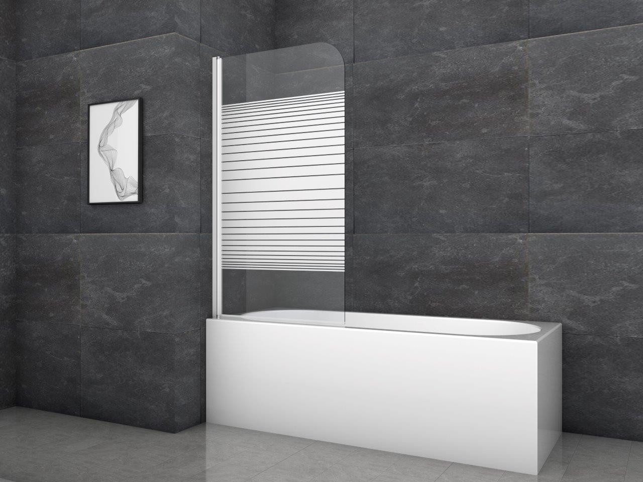 Die Marwell Badewannenfaltwand Pulse 1 schützt optimal vor Spritzwasser beim Duschen und macht dabei eine gute Figur. Das Glaselement aus 6 mm Sicherheitsglas lässt sich zum bequemen Einstieg leicht einklappen. Die moderne Art zu duschen Als Aufsatz auf dem Badewannenrand montiert, sorgen Wasserabweisprofile dafür, dass kein Wasser nach außen dringen kann. Das weiße Aluminiumprofil fügen sich farblich perfekt in Ihr Badezimmer ein. Praktisch, elegant und einfach montierbar Vorbei sind die Zeiten, als der nasse Duschvorhang am Körper klebte - die 1-flügelige Marwell Badewannenfaltwand Pulse 1 bleibt auf Distanz und sorgt für ein entspanntes Duscherlebnis. Durch die transparente Glasscheibe kommt viel Licht in Ihre Badewanne, während der mittige Dekordruck optischen Schutz bietet. Zur leichten Reinigung ist die Badewannenfaltwand schwenkbar. Mit dem mitgelieferten Montageset ist die Anbringung an der Wand einfach vorzunehmen. Die Maße der Duschwand betragen.