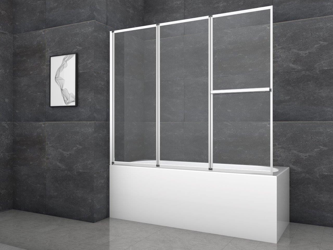 Die MARWELL Badewannenfaltwand Silver Vital Chrom 3-flügelig schützt optimal vor Spritzwasser beim Duschen und macht dabei eine gute Figur. Die Glaselemente aus 4 mm Sicherheitsglas lassen sich zum bequemen Einstieg leicht einklappen. Vollkommener Schutz Als Aufsatz auf dem Badewannenrand montiert, sorgen Wasserabweisprofile dafür, dass kein Wasser nach außen dringen kann. Der chromfarbene Aluminiumrahmen fügt sich farblich perfekt in Ihr Badezimmer ein. Der integrierte Handtuchhalter bietet zusätzlichen Komfort. Praktisch, elegant und einfach montierbar Vorbei sind die Zeiten, als der nasse Duschvorhang am Körper klebte - die MARWELL Badewannenfaltwand Silver Vital bleibt auf Distanz und sorgt für ein entspanntes Duscherlebnis. Durch die transparenten Glasscheiben kommt viel Licht in Ihre Badewanne. Zur leichten Reinigung ist die Badewannenfaltwand schwenkbar. Mit dem mitgelieferten Montageset ist die Anbringung an der Wand einfach vorzunehmen. Die Maße der Duschwand betragen (B x H x T): 166,4 cm x 140 cm x 10 cm
