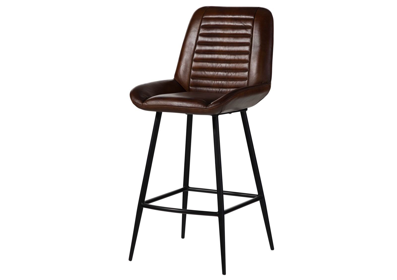 Wenn edel sportlich trifft, dann kommt zum Beispiel dieser Barstuhl mit Bezug aus Büffelleder heraus. Der attraktive Stuhl zeigt sich mit attraktiven Steppnähten, die den sportiven Charakter betonen, während das braun eingefärbte Leder Noblesse verbreitet. Stabile Eisenstäbe bilden indes die Beinkonstruktion mit rundum verlaufenden Sprossen zum Ablegen der Füße.