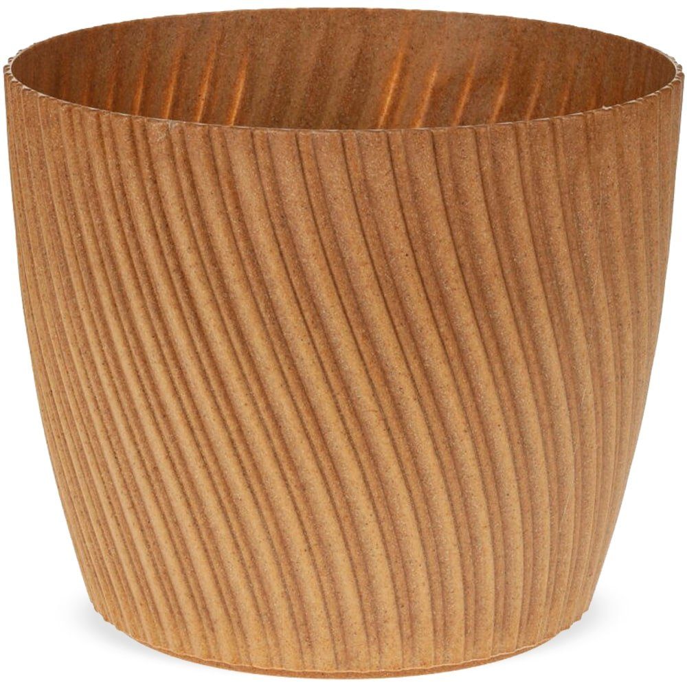 matches21 Runde Übertöpfe aus Kunststoff und Holz - Minimalistische Blumentöpfe gerillt in 2 schönen Farben - große Pflanztöpfe für Zimmerpflanzen Ø 26 cm